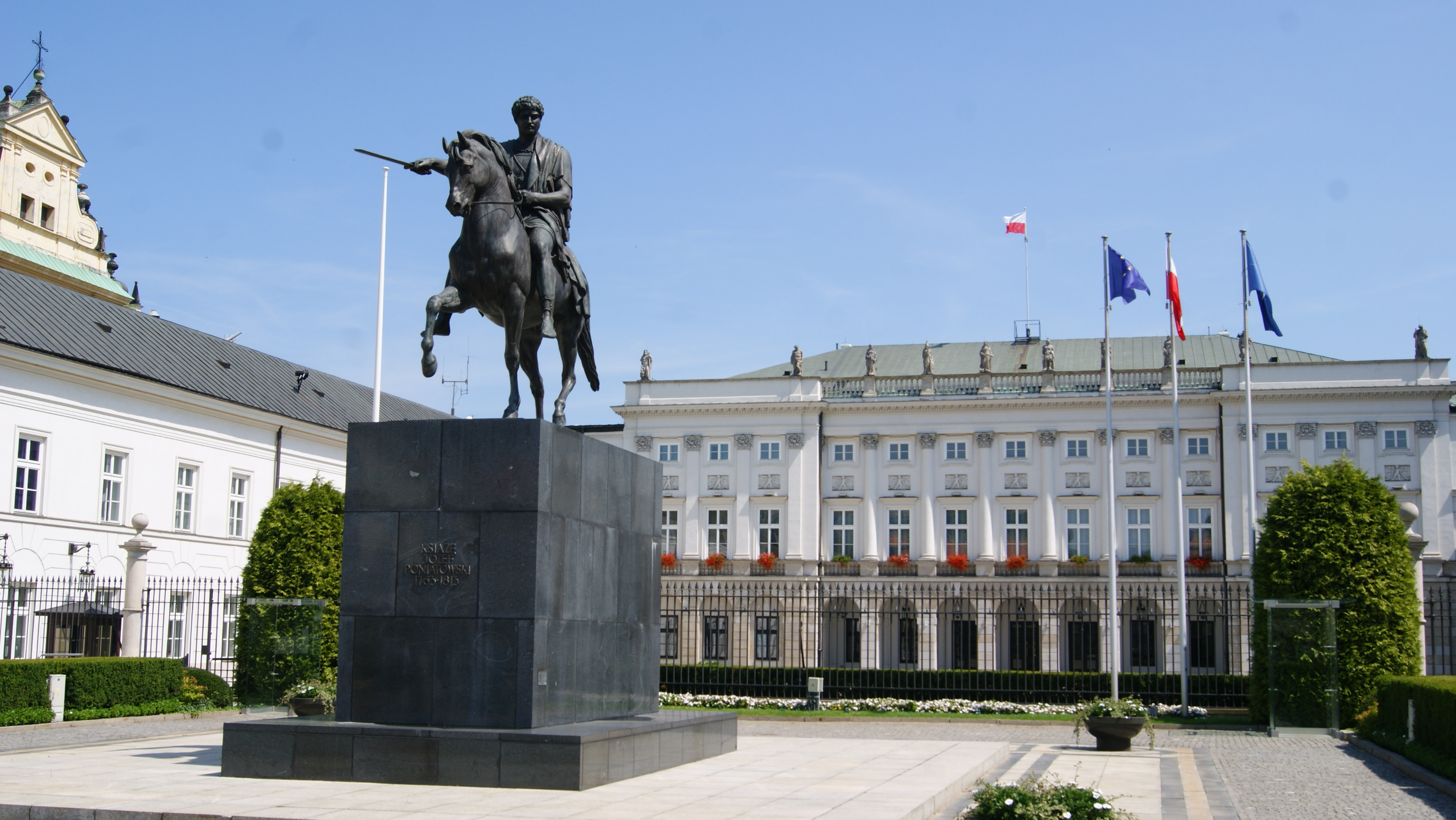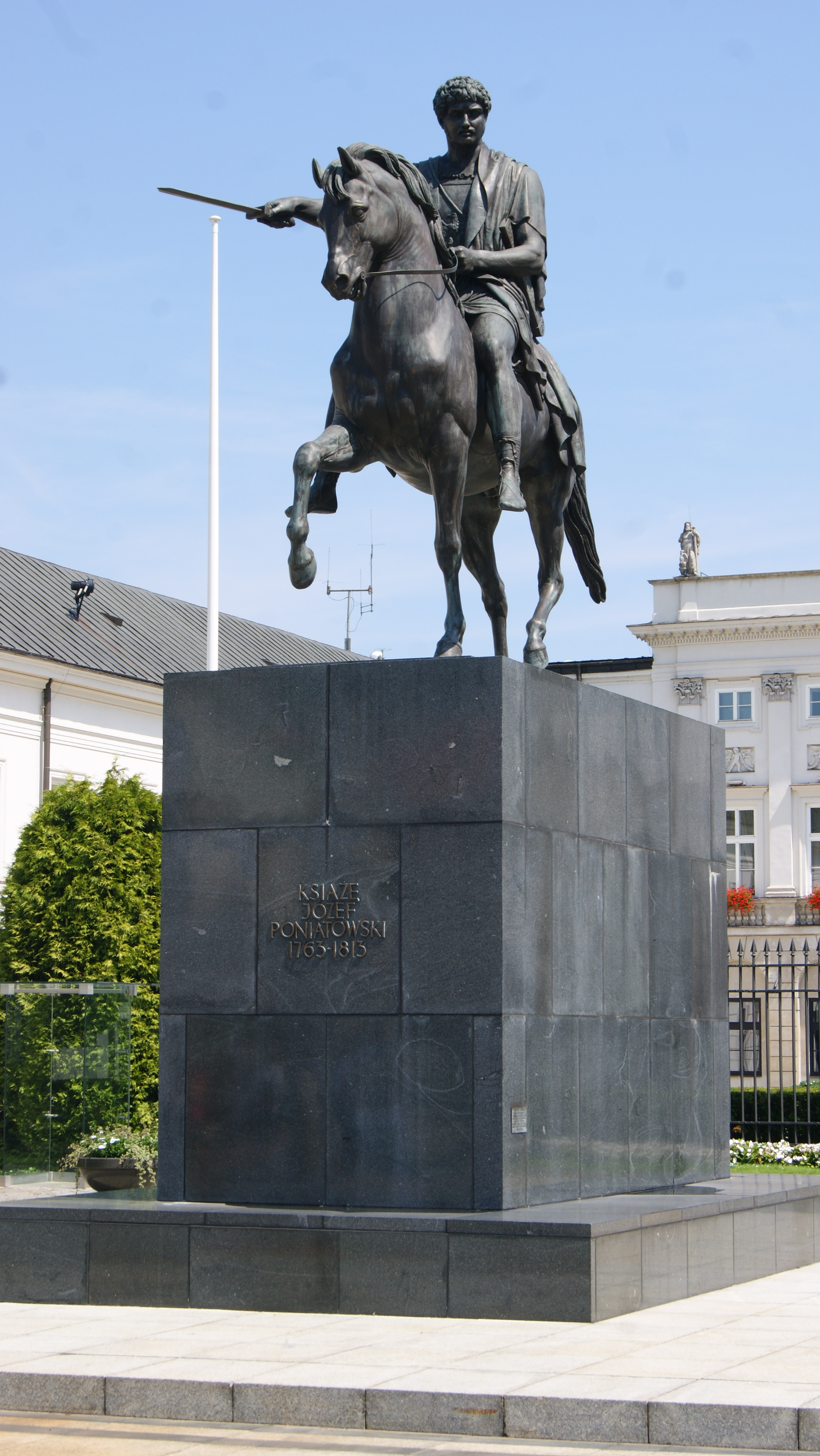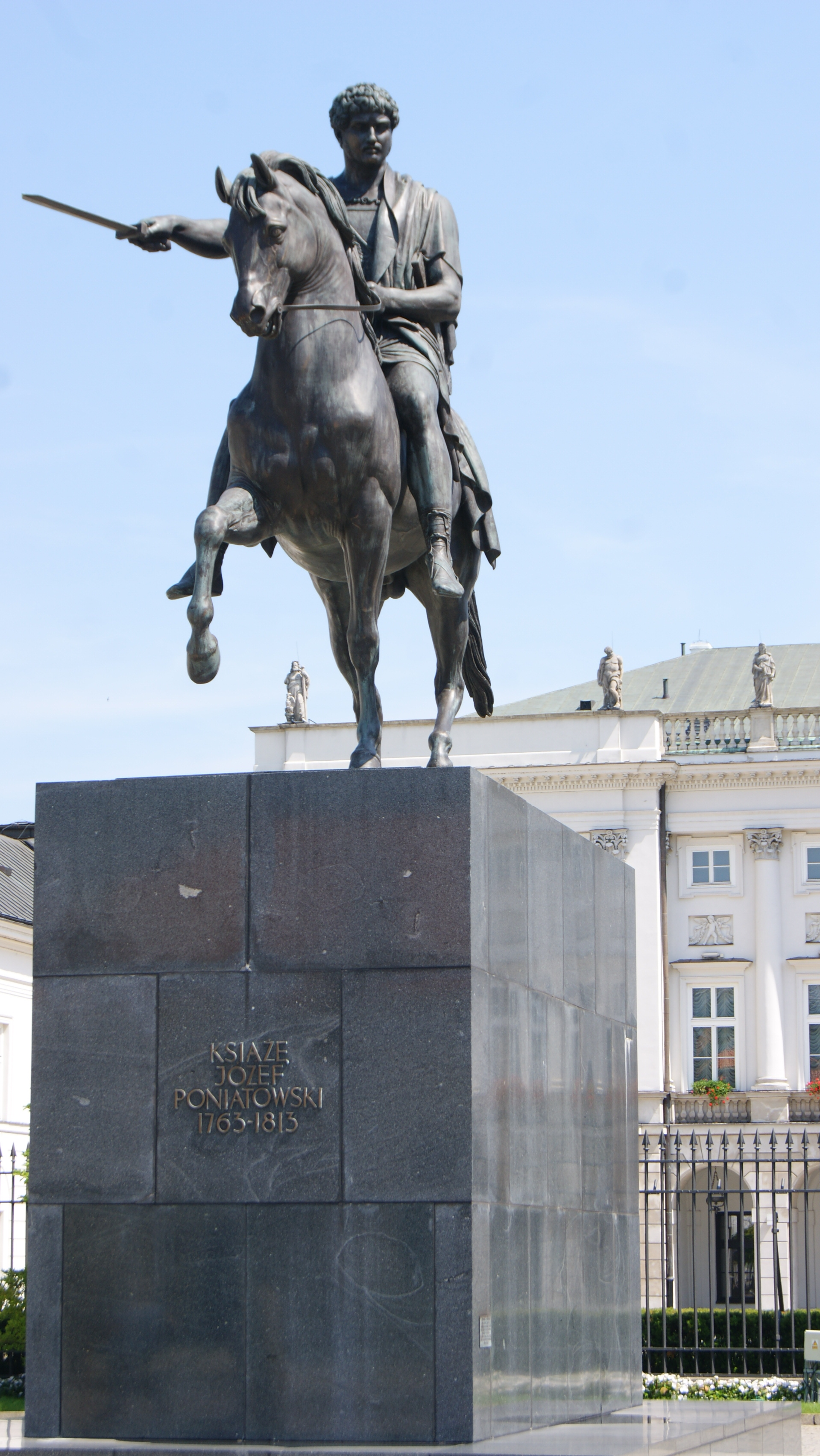 Hrabina Anna Potocka wyjednała u cara Aleksandra I zgodę na postawienie w Warszawie konnego pomnika Poniatowskiego. Komitet honorowy pod przewodnictwem generała Stanisława Mokronowskiego uzbierał ponad 440 tys. złotych. Pracę nad pomnikiem powierzono słynnemu Duńczykowi Thorvaldsenowi. Na miejsce przyszłego pomnika wybrano plac przed pałacem Radziwiłłów (od 1818 zwanym Namiestnikowskim), zastanawiano się także nad innymi lokalizacjami – np. sam Thorvaldsen po wizycie w Warszawie optował za palcem Krasińskich.