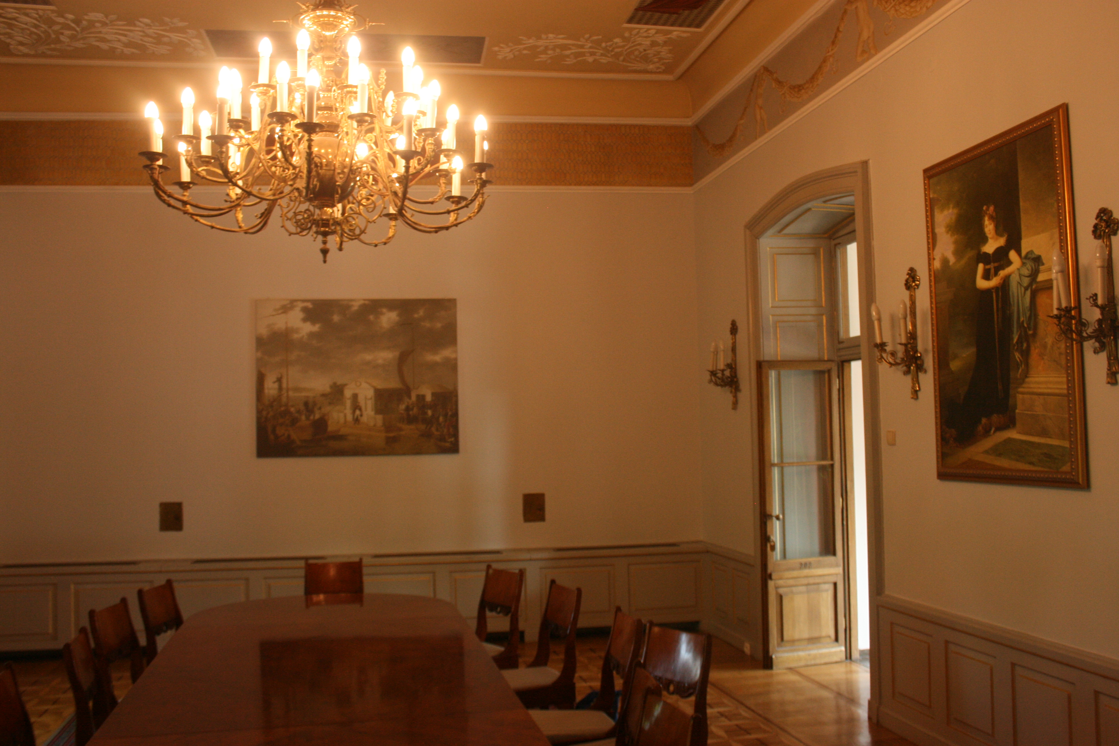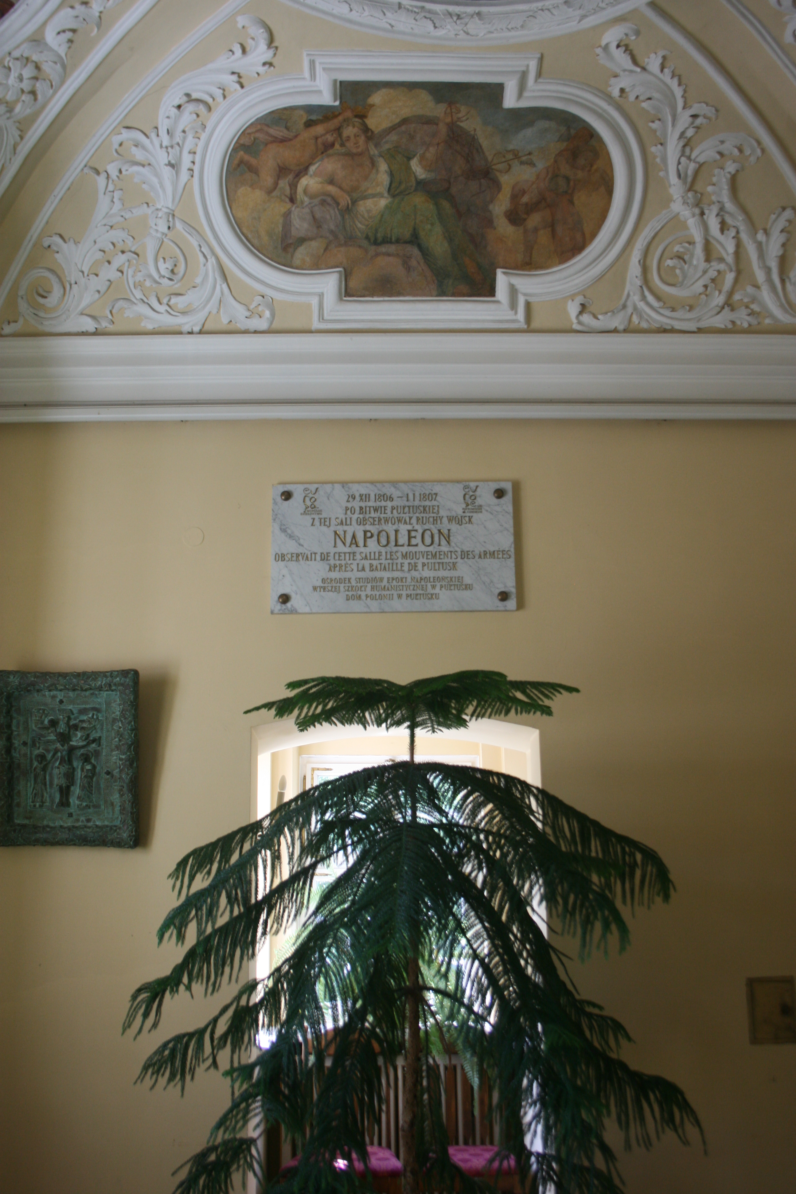 Po długich pertraktacjach z panią w recepcji (wizytówka, legitymacja dziennikarska, urok osobisty…), udaje mi się dostać klucze do pomieszczeń na I piętrze. W Sali Rady stoi kopia rzeźby przedstawiającej postać Napoleona (oryginał znajduje się w Muzeum Romantyzmu w Opinogórze), wisi sztych przedstawiający bitwę pod Pułtuskiem oraz obraz na którym uwieczniono spotkanie Napoleona i cara Aleksandra I w Tylży. Największy i najpiękniejszy jest obraz Marii Walewskiej (oryginał autorstwa Francoisa Pascala Gerarda, z roku 1810 wisi w Pałacu Inwalidów w Paryżu).
