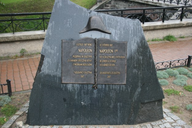 Potem wracając spod Gutkowa zatrzymał się dłużej. Wjechał do miasta mostem św. Jana Nepomucena, dalej przez ulicę Prostą stanął na rynku Starego Miasta. Tutaj przyjął defiladę wojskową i odebrał meldunki od zwiadowców. Jedynym godnym go budynkiem w zdewastowanym mieście był zamek olsztyński, na którym zjadł obiad i spędził kilka godzin. Znając jego zainteresowanie naszym wielkim astronomem można założyć, że pytał o szczegóły pobytu Kopernika w Olsztynie. Po południu wyjechał ponownie stronę Gutkowa. Noc z 3 na 4 lutego cesarz spędził już na biwaku pod Gutkowem.
