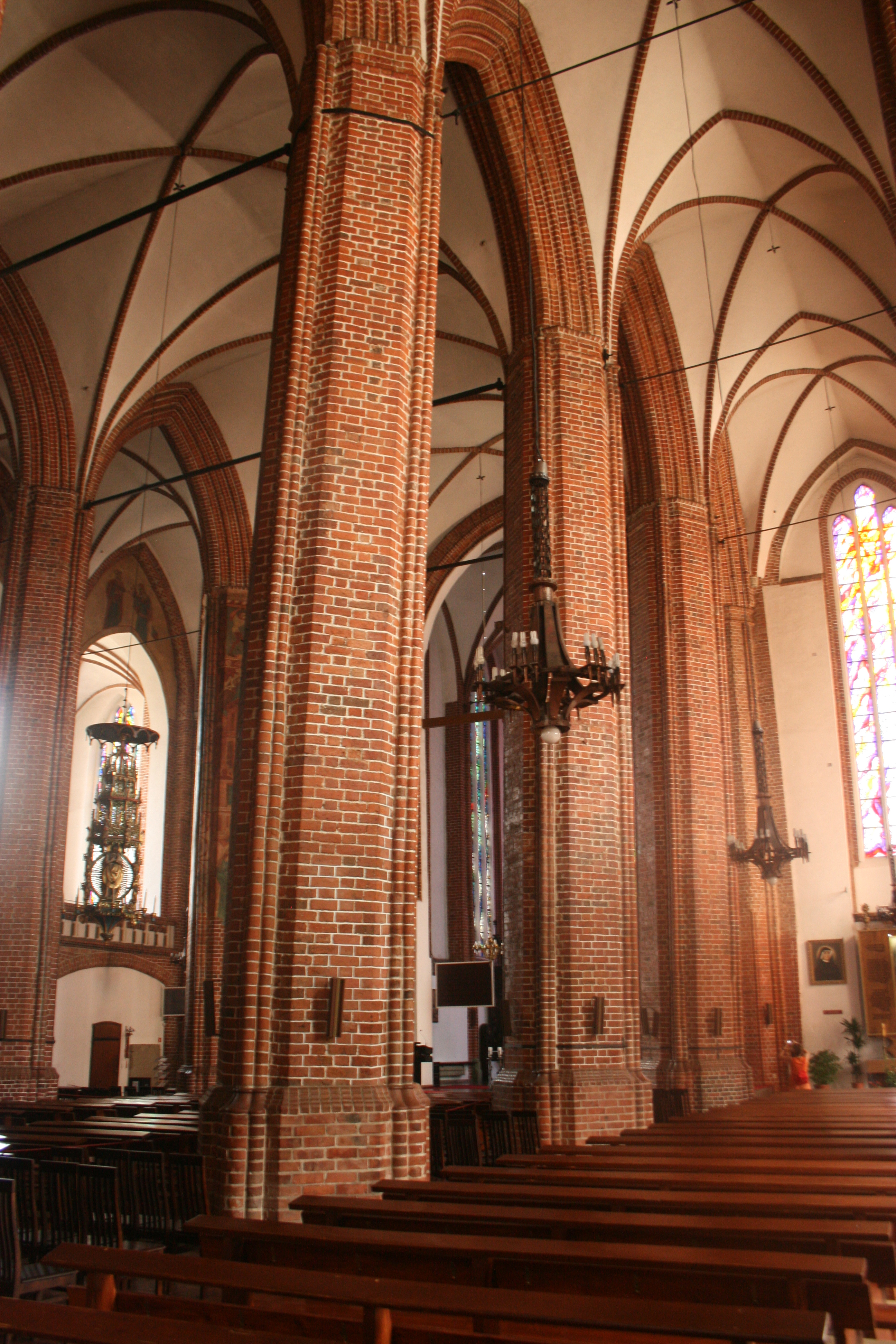 Warto zwrócić uwagę nie tylko na średniowieczna architekturę i gotyckie sklepienia ale choćby na odlany z brązu siedmioramienny świecznik z roku 1327 o wysokości 4 metrów i rozpiętości ramion – 3,8 m. Na jednej ze ścian wisi obraz Rycerz na cmentarzu (zwany Tańcem Śmierci), który w 1960 został ukradziony do… miejscowej biblioteki publicznej, jako zaczątek mającego powstać muzeum. Inny obraz przedstawia Cnotliwą Niewiastę z kłódką na ustach, kluczach przy uszach i krzyżem w dłoniach oraz kopytami zamiast stóp.