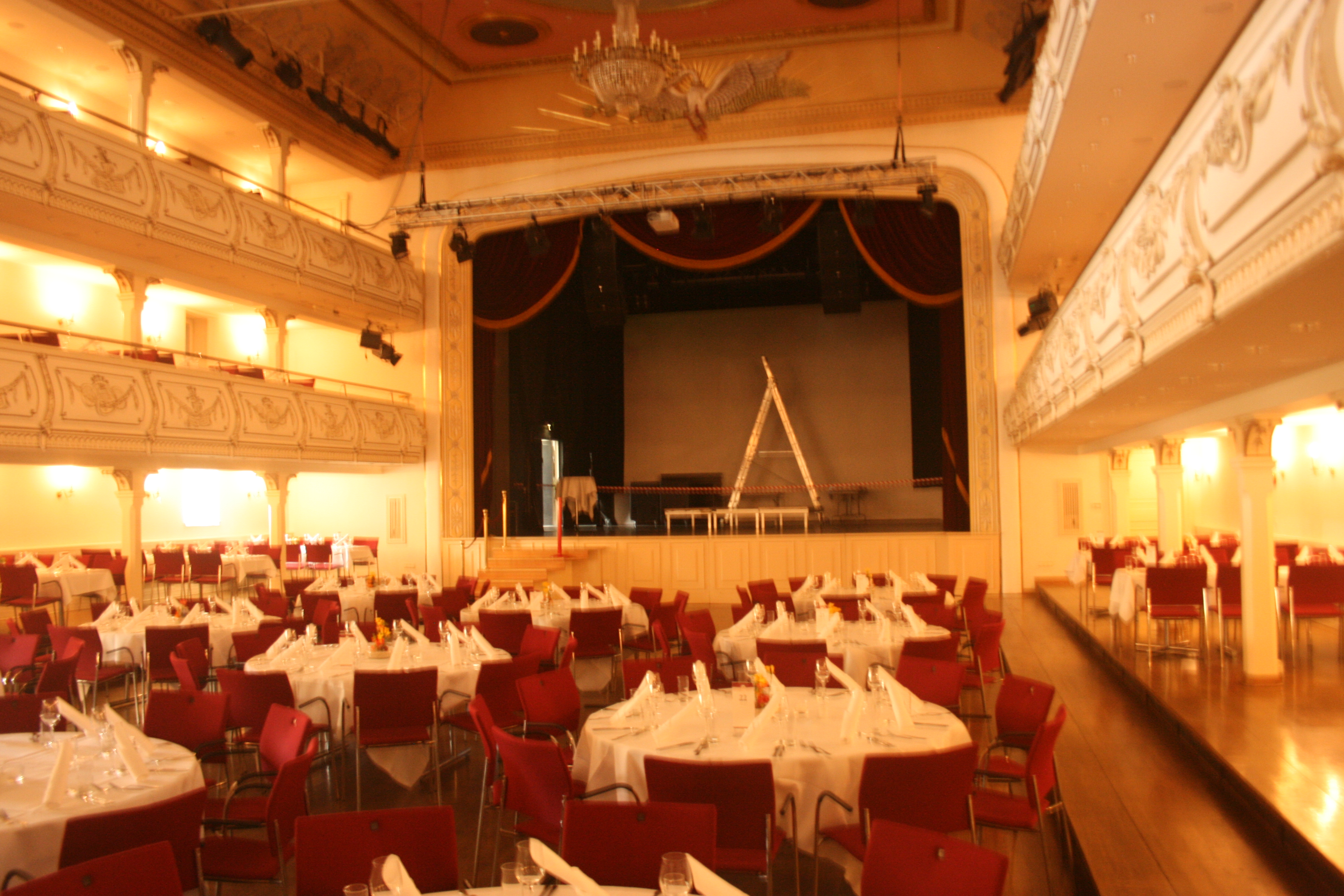 Dzisiejszy widok sali, w której podczas zjazdu erfurckiego odbywały się spektakle teatralne oglądane przez Napoleona.