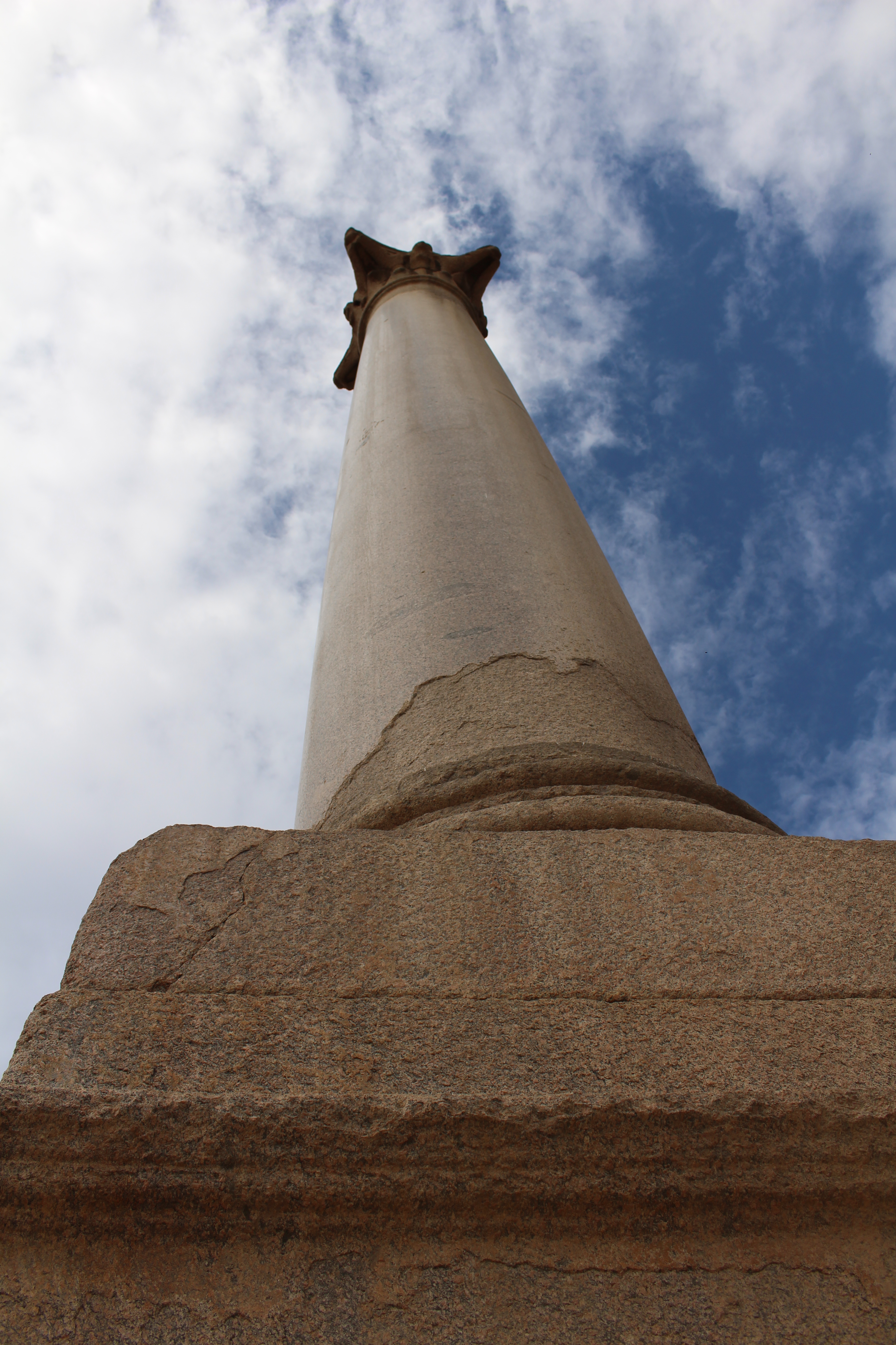 Kolumna stoi na niewielkim wzniesieniu w dzielnicy Karmus, ma wysokość 27 metrów, wykonana została z czerwonego asuańskiego granitu ok. 297 r, przez cesarza Dioklecjana. Nazwa jest myląca, przed wiekami sądzono, że pod kolumną spoczywa generał Pompejusz. W istocie kolumna jest pozostałością zespołu Serapeum, świątyni Serapisa, który wzniesiony został w połowie III w. p.n.e. Powierzchnia kolumny jest cała zdrapana. Nie ma też śladów po wyrytych nazwiskach poległych żołnierzy francuskich.