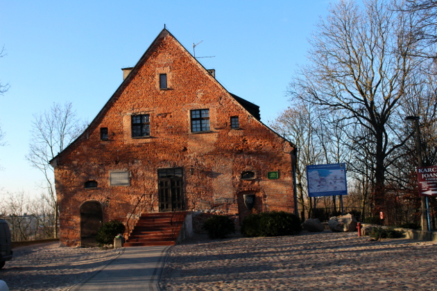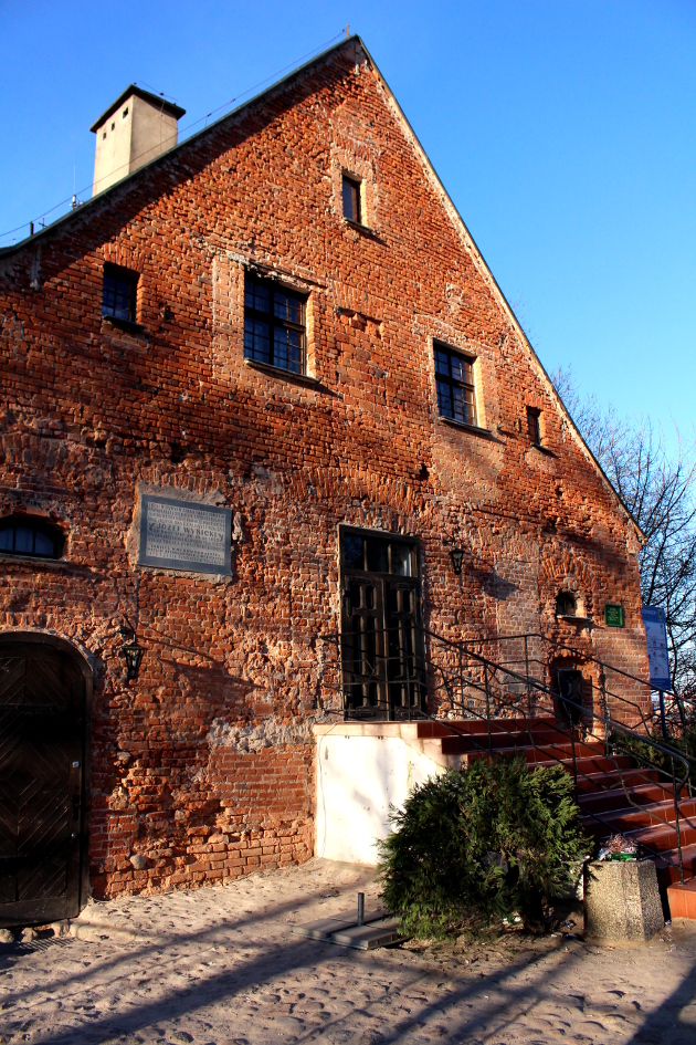 Budynek dawnego Sądu Grodzkiego w Skarszewach (wcześniej część zamku Joannitów) z widoczną tablicą ku czci Wybickiego.