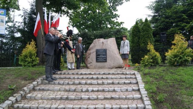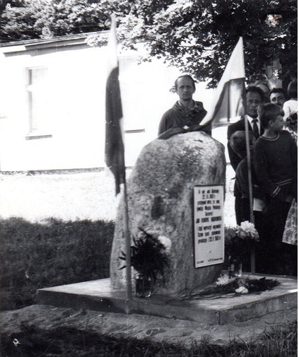 Tablica na kamieniu pamiątkowym w Narkowach.