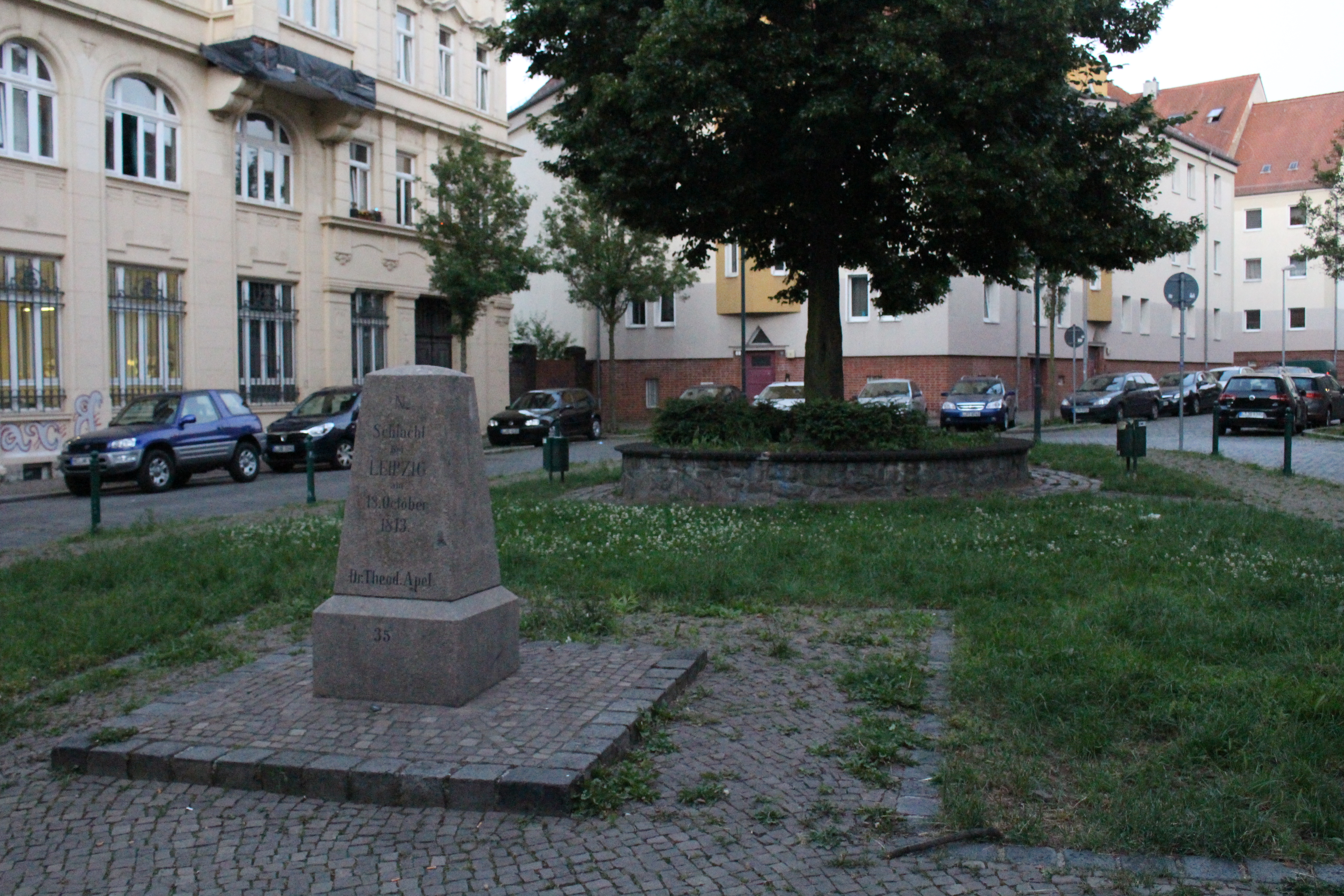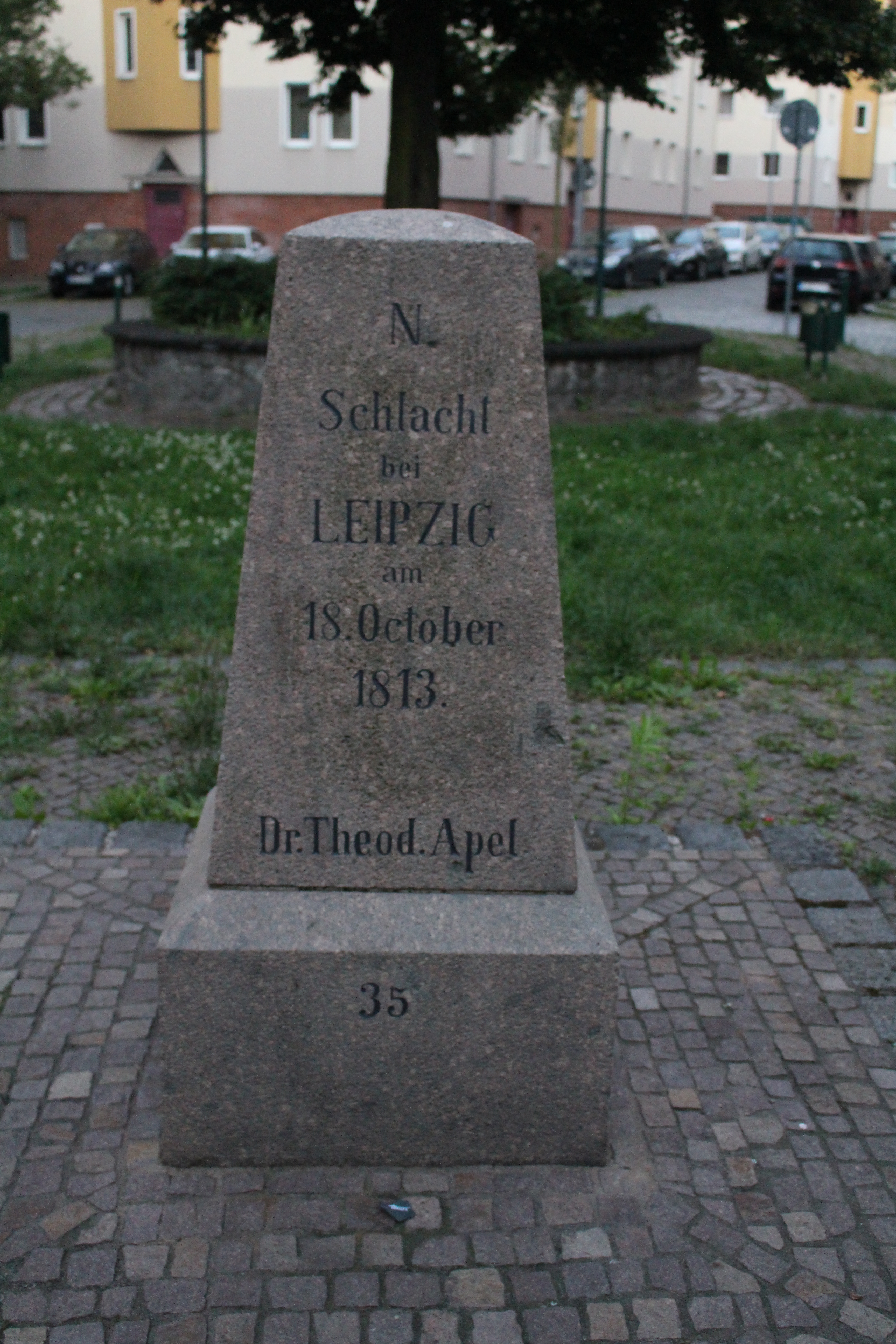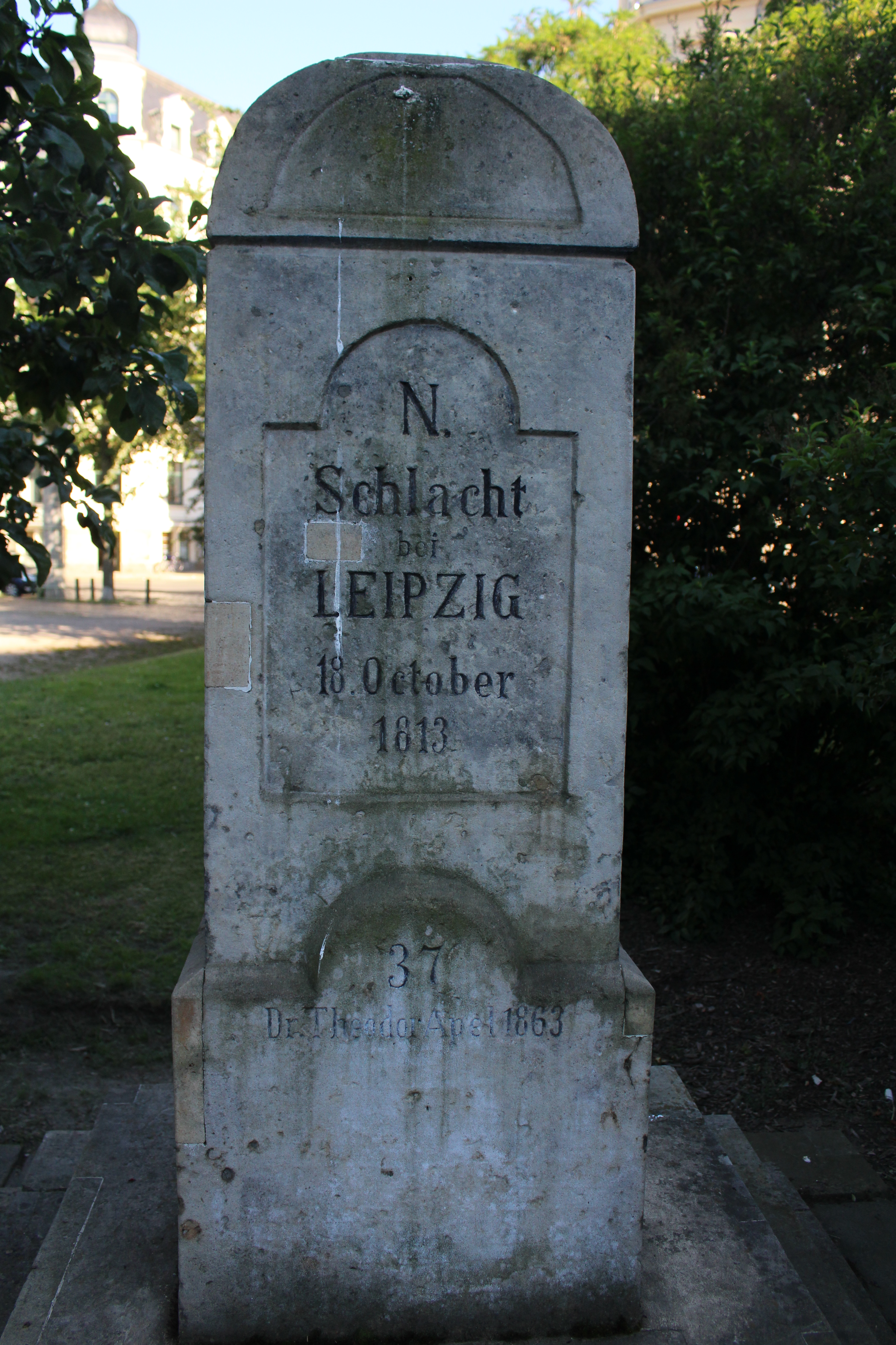 Na pomysł upamiętnienia bitwy wpadł przed 50. rocznicą pisarz Theodor Apel, przyjaciel Richarda Wagnera. W latach 1861 – 64 z własnych pieniędzy opłacił postawienie 44 kamiennych pomniczków. Sześć pozostałych opłaciły organizacje i osoby prywatne. W sumie jest ich 50 a nazywane są potocznie kamieniami Apla (Apelsteine).