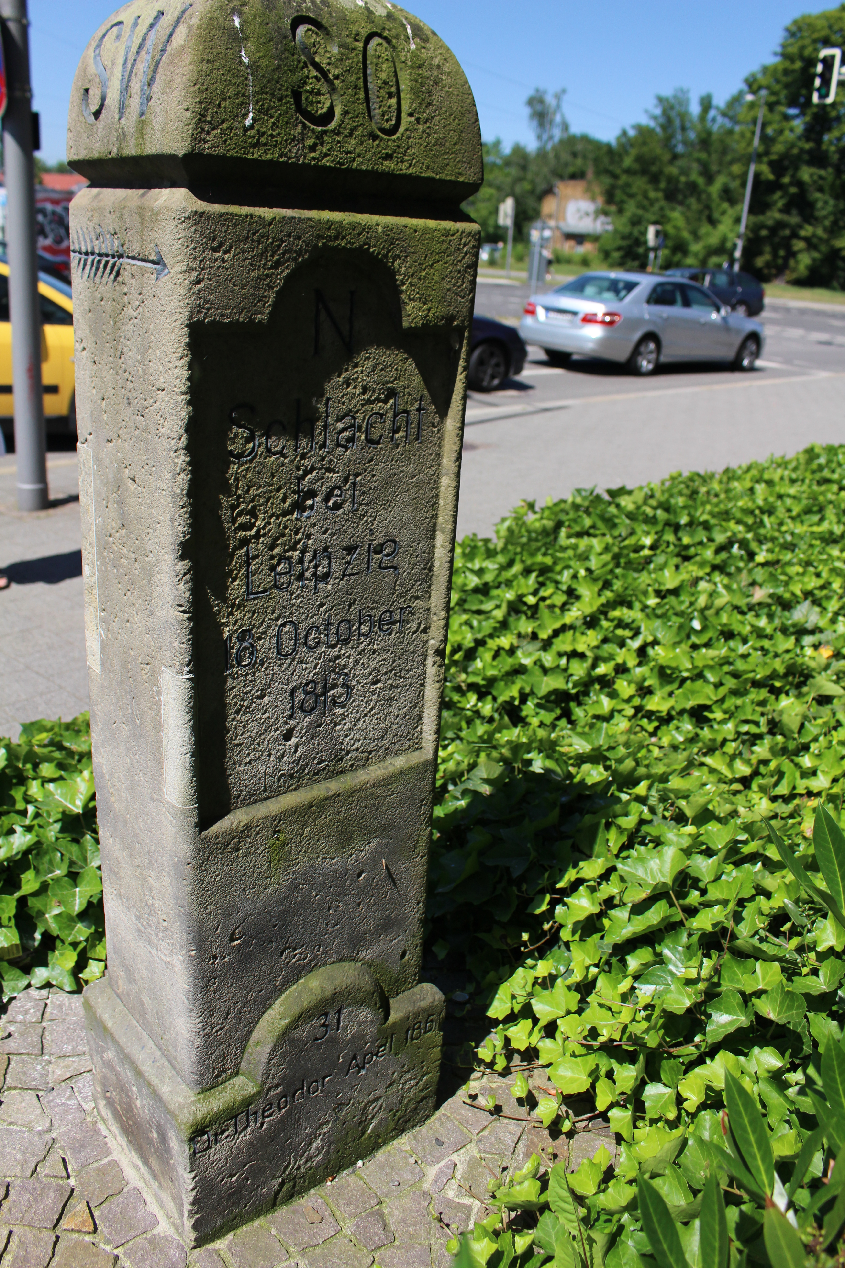 Kamienne, wysokie na półtora metra kolumny stoją skromnie w różnych miejscach Lipska i okolic. Wśród bloków, na zielonych skwerach, placach, w parkach. Nieco się różnią od siebie – kształtem górnej części, inskrypcjami, literami je wieńczącymi. Postawiono je w jednym celu – by uczcić walczących w tych właśnie miejscach w Bitwie pod Lipskiem w 1813 roku.