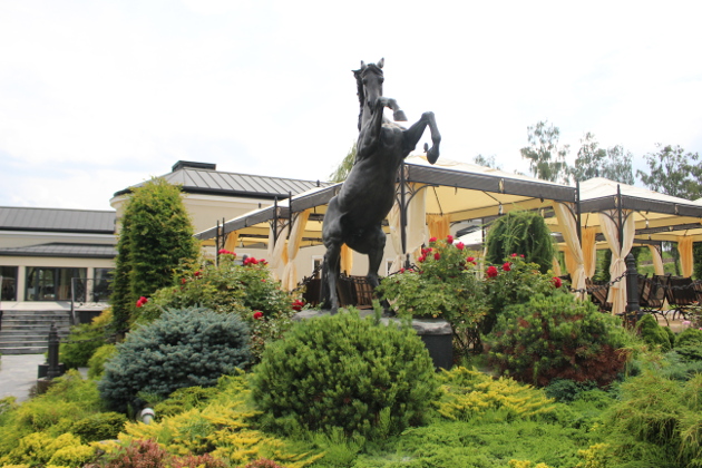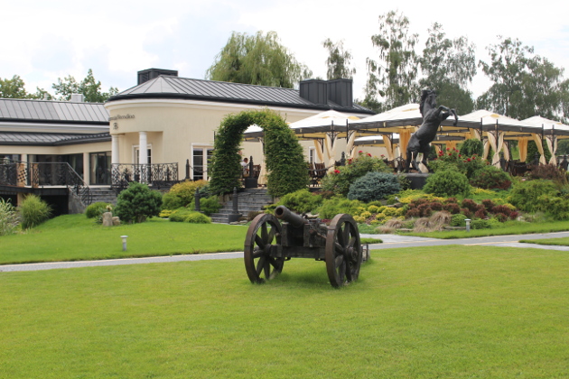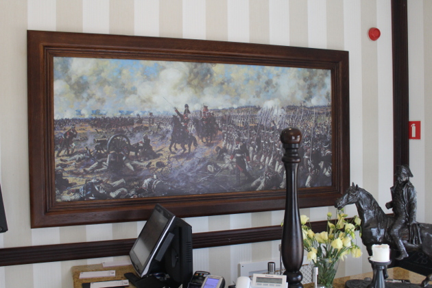 Tuż przy wejściu wita nas posąg cesarza na koniu i obraz przedstawiający Bitwę pod Borodino. Na trawie przed budynkiem armata, dalej posąg wierzchowca kawaleryjskiego. A w podziemiach czekają na nas… Piwnice Napoleońskie. Jesteśmy w restauracji Borodino w Modlinie.