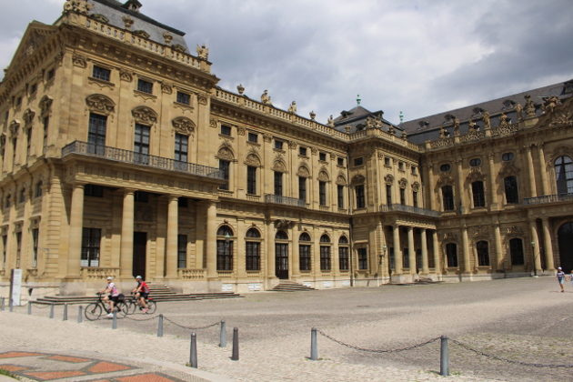 Najbardziej imponująca część rezydencji to główna klatka schodowa (Treppensaal ) – jej sklepienie pokrywa największe na świecie malowidło sufitowe, fresk włoskiego artysty Giovanniego Tiepola “Cztery kontynenty”. Ta część pałacu, jako jedyna ocalała podczas bambardowań pod koniec II wojny światowej. Praktycznie cała budowla została zrujnowana, przetrwały właśnie klatka schodowa, Sala Biała i Sala Cesarska. Prace rekonstrukcyjne trwały dłużej niż budowa pałacu, ale zwieńczone zostały sukcesem. W 1981 roku pałac wraz z ogrodem został wpisany na Listę Światowego Dziedzictwa UNESCO.