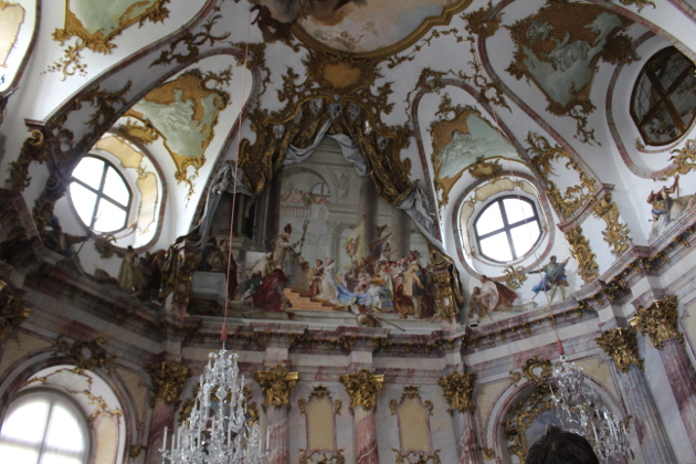 Nawet w bogatych w barokowe budowle Niemczech, pałac biskupi w leżącym we Frankonii Würzburgu, uchodzi za wyjątkowo udany. Budowano go przez ćwierć wieku a ukończono w roku 1744. Do roku 1780 powstał ogród pięknem dorównujący pałacowi.