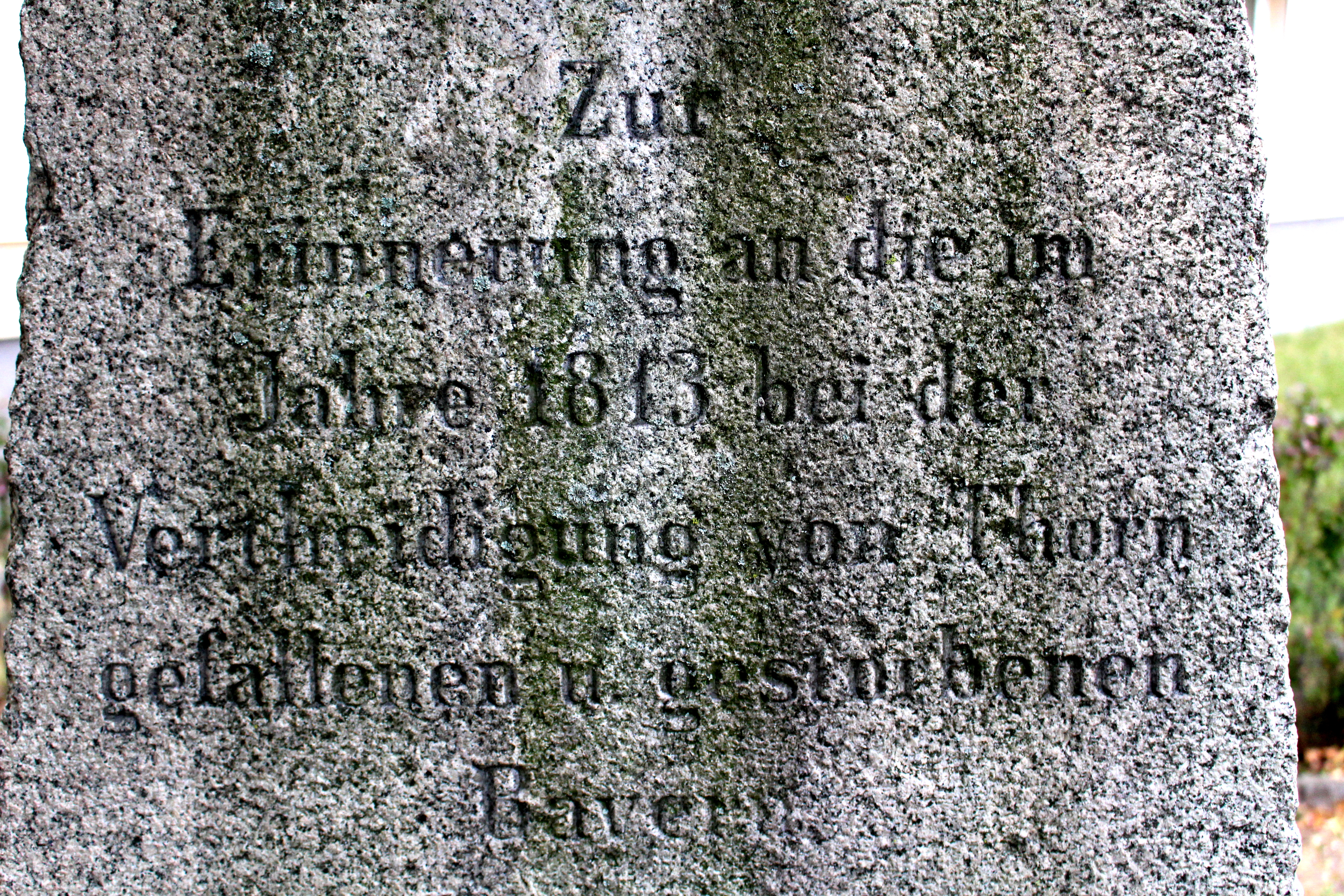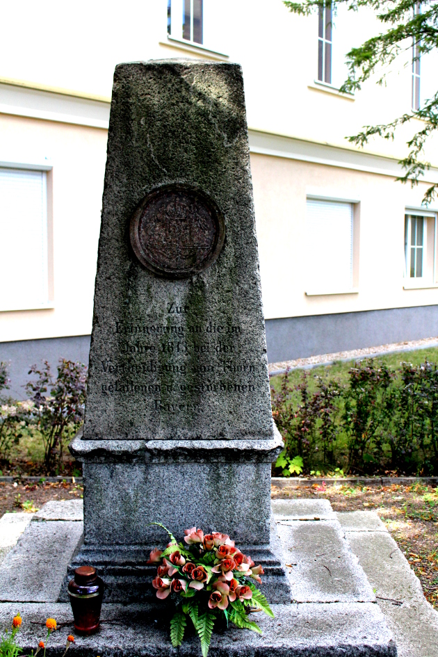 W 1885 r. bawarski szef sztabu generalnego Max Verri della Bossi wyszedł z propozycją upamiętnienia śmierci swoich rodaków. Proponował postawienie pomnika, dwa lata później rząd Bawarii wykupił część dawnego cmentarza, na którym pochowano żołnierzy z 1813 roku. Pomnik odsłonięto 26 maja 1888 roku, koszty ponosiła Bawaria, a opiekę miało sprawować miasto. W uroczystości, poza burmistrzem i komendantem Torunia wziął udział bawarski pełnomocnik przy dworze berlińskim gen. Xylander. Jak pisała Gazeta Toruńska: „Generał Xylander złożył pod pomnikiem wieniec laurowy i bukiety z róż i niezapominajek, zaopatrzonych we wstęgi o barwach narodowych bawarskich białej z niebieską, na których umieszczono złotemi głoskami napis w języku niemieckim: “Bądź wierny aż do śmierci 1813 – wdzięczna ojczyzna”.
