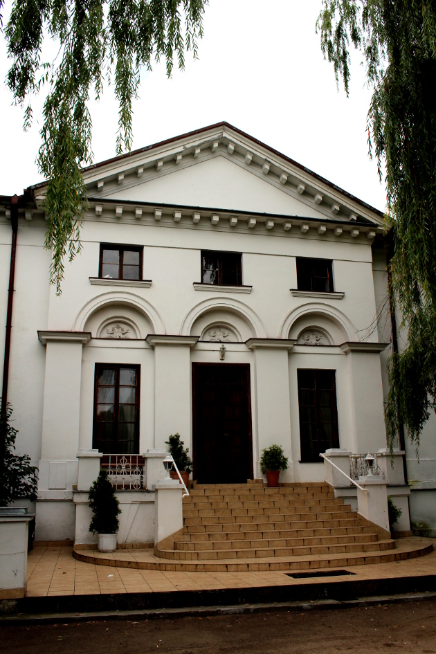 Kilkadziesiąt metrów za bramą znajduje się budynek niewielkiego pałacu. Od bramy prowadzi doń żwirowa droga, przechodząca w okrągły podjazd okalający klomb zieleni.