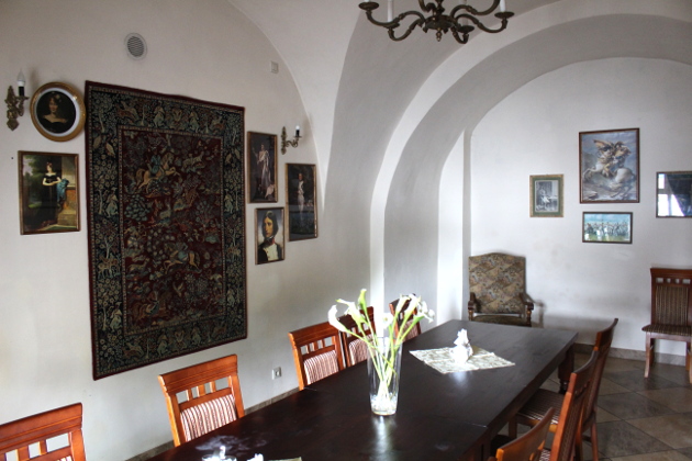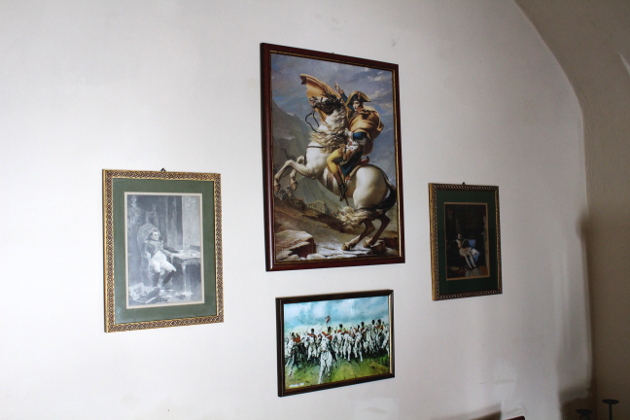 Na ścianach dwóch sal urządzono wystawę poświęconą Napoleonowi. Wiszą kopie jego portretów (m.in. Davida na rumaku i w stroju koronacyjnym), portrety Marii Walewskiej i kopia obrazu “Scotland Forever!” – pędzla Elizabeth Thompson, obrazu przedstawiającego szarżę Royal Scots Greys… Wolałbym naszych szwoleżerów, ale cóż, być może właściciel chciał docenić wroga spod Waterloo.