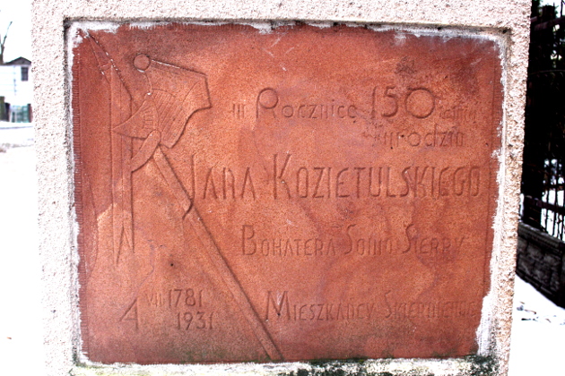 Napis zawierał błędną datę urodzin Kozietulskiego. W roku 1945 tablica została uszkodzona przez czołg a jej zachowane fragmenty znalazły miejsce w Izbie Historii Skierniewic.