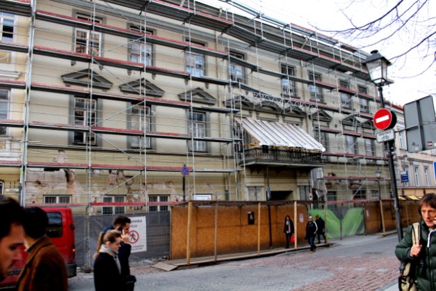 Dwa lata w tekście o napoleońskim Wilnie (czytaj TUTAJ) pisałem o pałacu m.in.: “Wygląd tego ostatniego przeczy dawnej przeszłości. Budynek jest zaniedbany, brama i podwórze są zdewastowane, zaśmiecone, śmierdzące…”