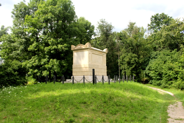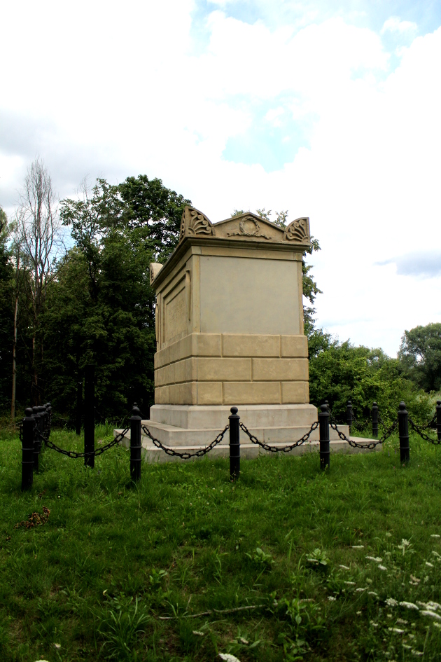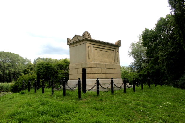Wyspa w Parku Wilanowskim to jeden z bardziej romantycznych zakątków terenów parkowych. Gdy po przejściu Mostu Rzymskiego pójdziemy ścieżka w prawo, dojdziemy do grobowa przypominającego greckie tego typu obiekty. Piękny, klasycystyczny pomnik upamiętniający bitwę pod Raszyenm w 1809 roku.
