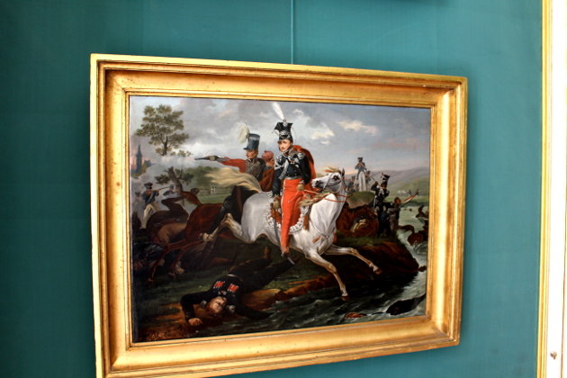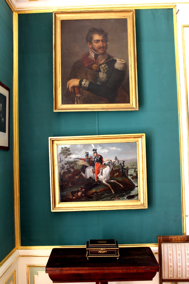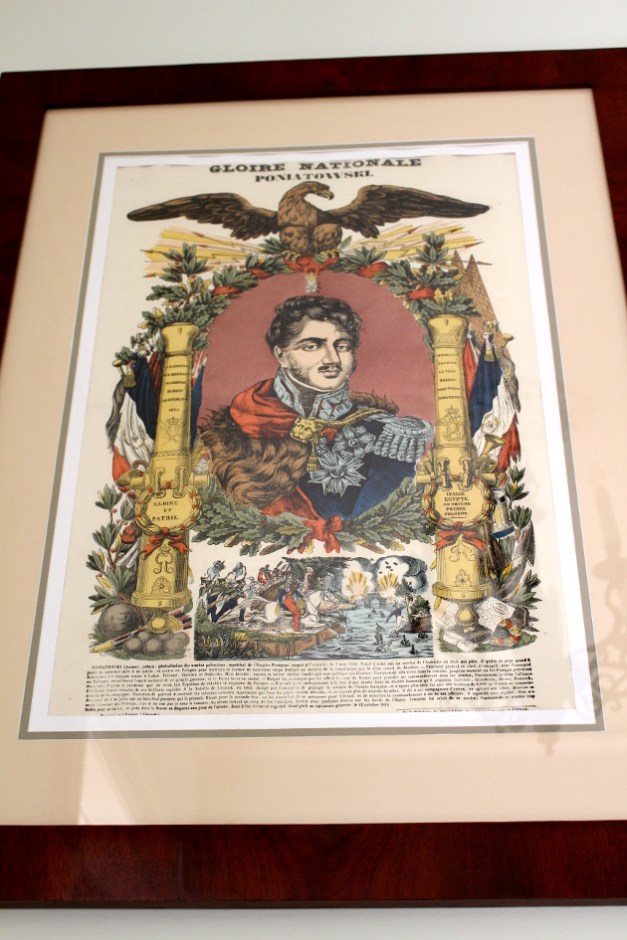 Najbardziej jednak uwagę przyciągają obrazy przedstawiające samego księcia. Portret w mundurze marszałka Francji z Gwiazdą Legii Honorowej i Gwiazdą Orderu Virtuti Militari (kopia autorska Józefa Grassiego) oraz obraz przedstawiający “Śmierć ks. Józefa Poniatowskiego w nurtach Elstery”, namalowany w 1820 r. przez Marcina Zalewskiego (1796–1877), według sztychu Louisa Ph. Debucourta. Możemy obejrzeć również litografię przedstawiającą księcia, autorstwa François Séraphin Delpecha.