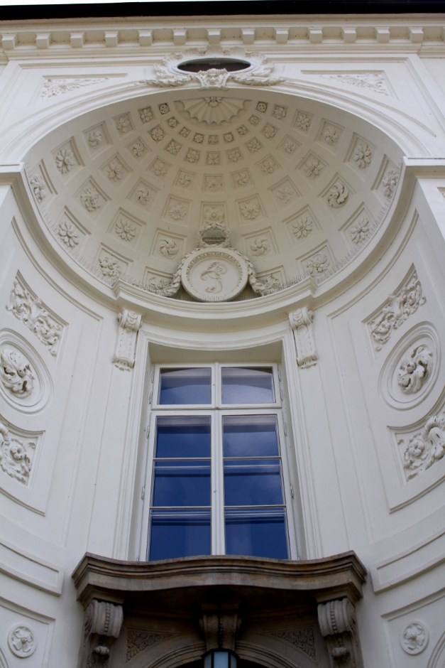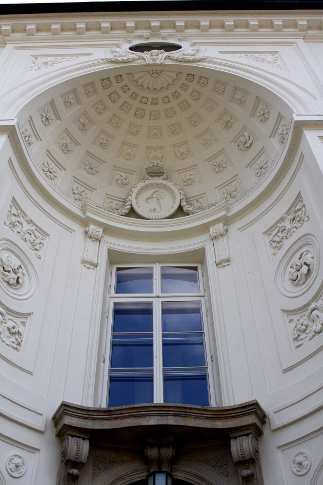 Przypominają o tym inicjały “JP” umieszczone na froncie pałacu, w niszy nad głównym wejściem.
