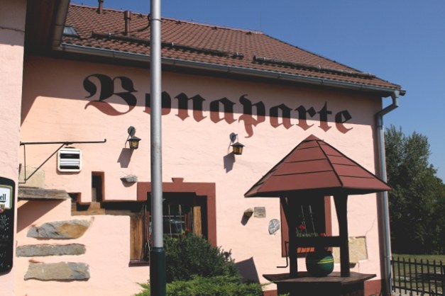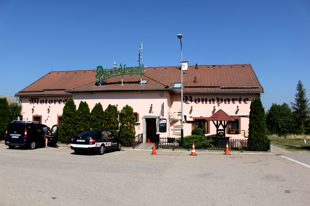 Nazwa kusi, żeby tu przenocować. No, bo jeśli przejeżdża się drogą, którą wycofywali się Rosjanie pokonani pod Austerlitz, tuż obok rozciąga się teren Bitwy pod Austerlitz – to jak nie zboczyć z szosy przy napisie “Motorest Bonaparte”?