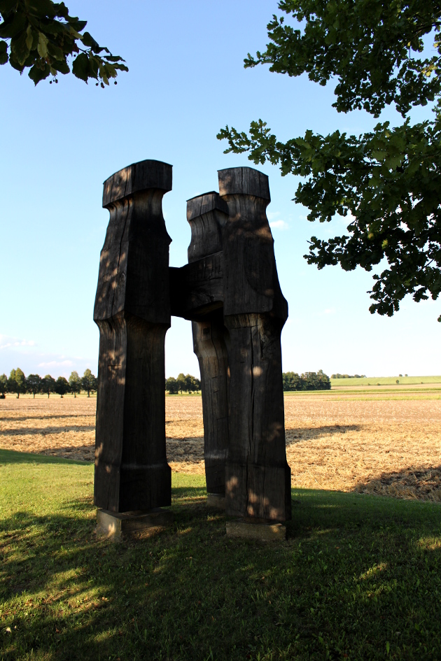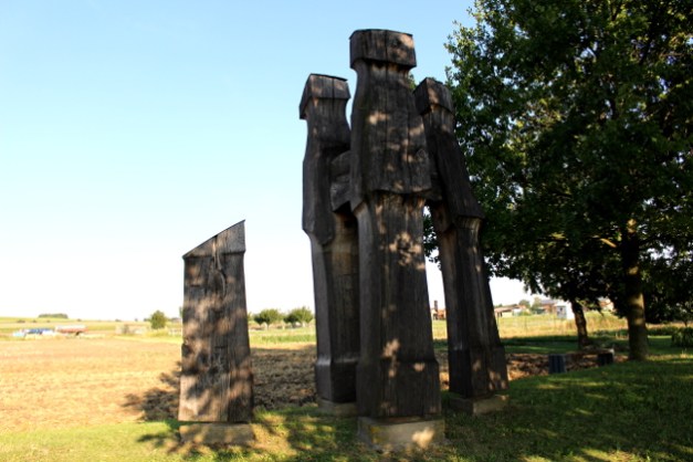 Trzy kilkumetrowe wyciosane w drewnie postacie zgrupowane w małym kręgu stoją tuż za wsią Blažovice, prawie w centrum pola bitwy pod Austerlitz. Symbolizują żołnierzy trzech armii walczących tutaj w 1805 roku.