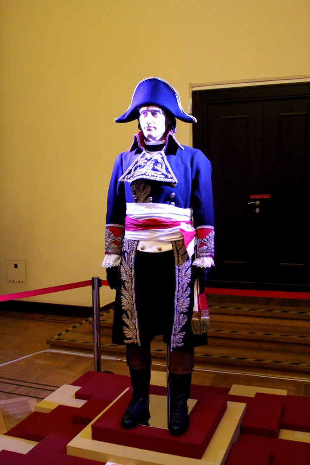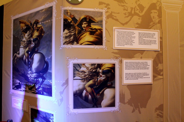Eksponaty rozmieszczono chronologicznie. Na początku jednak gratka dla wielbicieli zdjęć pamiątkowych. Można zapozować na replice tronu cesarskiego, w kopii napoleońskiego bikornu lub z pistoletem i karabinem z epoki. Po sesji fotograficznej czas na zwiedzanie.
