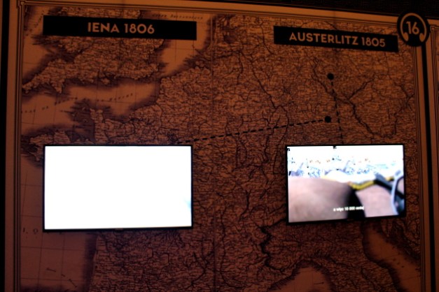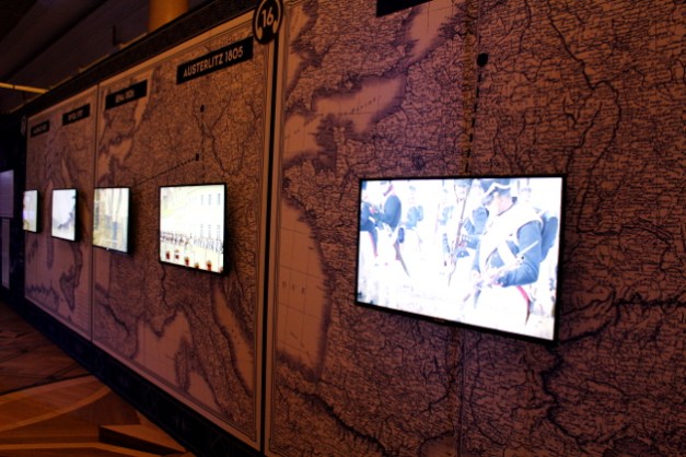 Na pięciu ekranach wyświetlane są krótkie filmy o pięciu najważniejszych bitwach napoleońskich.