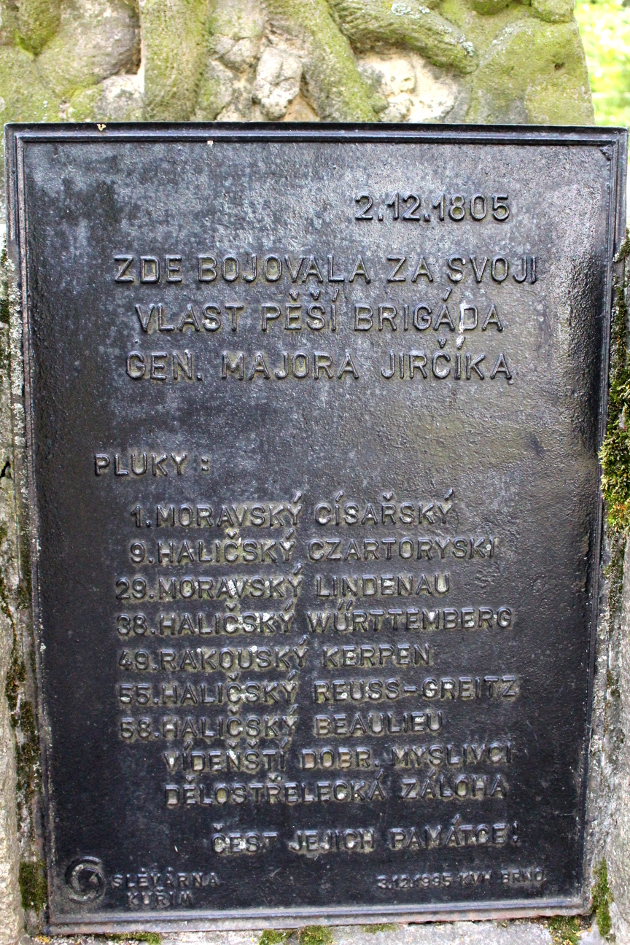 Na wzgórzu Prace, tuż obok wielkiego Pomnika Pokoju i Muzeum Bitwy pod Austerlitz stoi niepozorny kamienny pomnik. Upamiętnia generała Jirčika, Czecha w austriackiej armii i żołnierzy jego brygady.