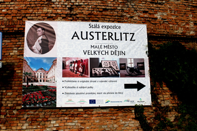 Wystawę pod takim, jakże trafnym tytułem (po czesku: Austerlitz – malé město velkých dějin), możemy oglądać w pawilonie stojącym na terenie zamku w Sławkowie koło Brna (dawnym Austerlitz).