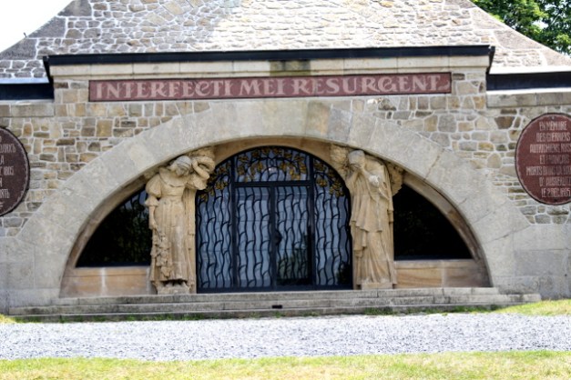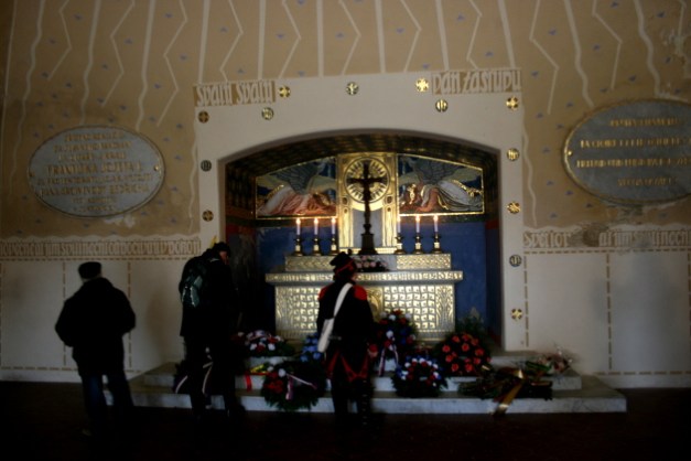 Nad wejściem do kaplicy, która znajduje sią w dolnej części mogiły umieszcozno napis, cytat z proroka Izajasza: “Moi polegli znów powstaną”.