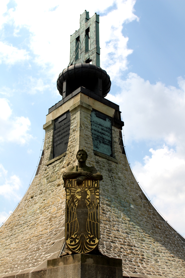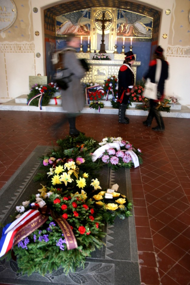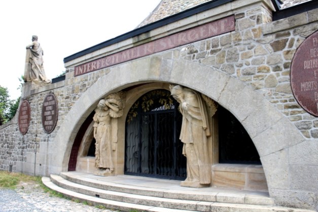 Inny napis w języku czeskim to cytat z czeskiego prezydenta Masaryka: “Nie przemocą, ale łagodnością, nie mieczem, ale pługiem, nie krwią, ale pracą, nie śmiercią, ale życiem dla życia”.