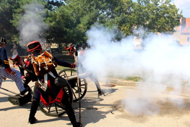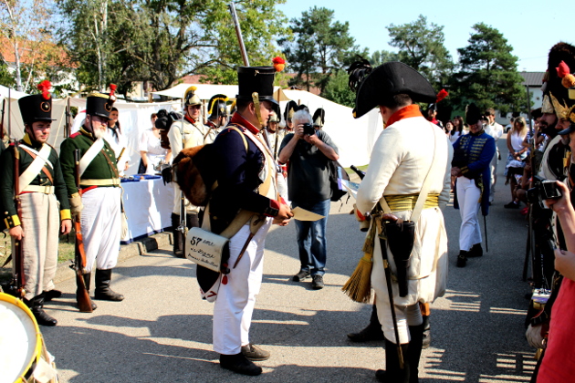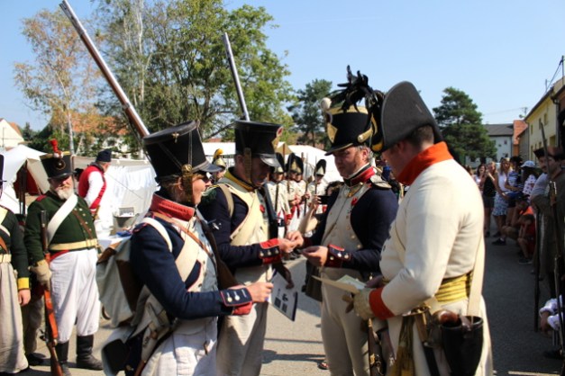 W sobotę odbyły się pierwsze pokazy musztry zawody strzeleckie w strzelaniu z muszkietu na 50 metrów. Wygrał je “cywil” (przebrany w cywilne ubranie z epoki), David Karásek z firmy LEX walczącej o powszechne prawo do broni. Drugie miejsca zajęli: Jindřiška Šimková (francuska piechota liniowa), była reprezentantka Słowacji w strzelaniu z pistoletu w Barcelonie w 1992 roku oraz Jan Dvořák, weteran rekonstrukcji napoleońskich od lat 80. ubiegłego wieku. Trzecie miejsca zajął z kolei “młodzik” Michal Slezák, noszący mundur 57 pułku piechoty zaledwie od dwóch lat.