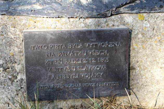 Na dużym trawiastym skwerze na skraju miasteczka Ujezd u Brna stoi pomnik kobiety trzymającej na rękach zwłoki mężczyzny w cywilnym ubraniu. To pomnik poświęcony cywilnym ofiarom bitwy pod Austerlitz.