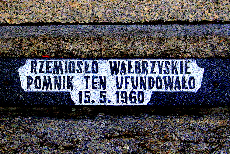 Poniżej napis poświęcony fundatorom: „Rzemiosło wałbrzyskie pomnik ten ufundowało 15.5.1960”.