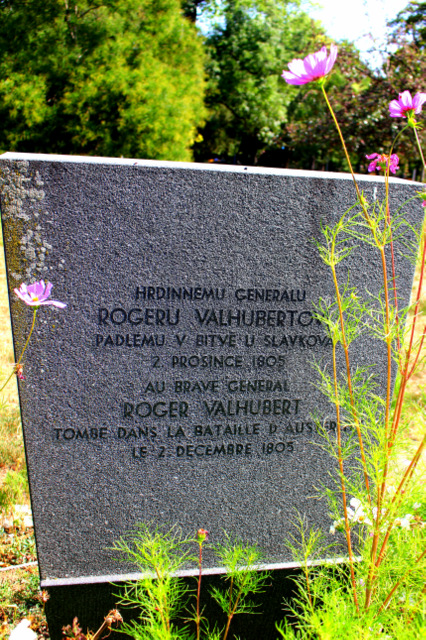 Urodzony 22 października 1764 roku Jean-Marie-Melon-Roger Valhubert został w bitwie ciężko ranny i przewieziony do Brna zmarł między 5 a 8 grudnia w domu przy ulicy Rudolsfke 6. W miejscu jego zranienia, niedaleko ws Twarożna i wzgórza Santon, stoi inny jego pomnik (czytaj TUTAJ).