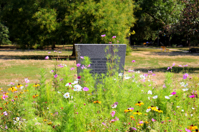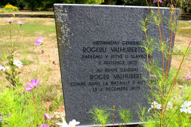 Park Tyršův sad znajduje się w centrum Brna. Po środku, na kwiecistym skwerze stoi skromny kamienny pomnik. Poświęcony jest jedynemu generałowi francuskiemu poległemu w bitwie. Valhubert zmarł w Brnie kilka dni po bitwie i został pochowany 8 grudnia 1805 roku.