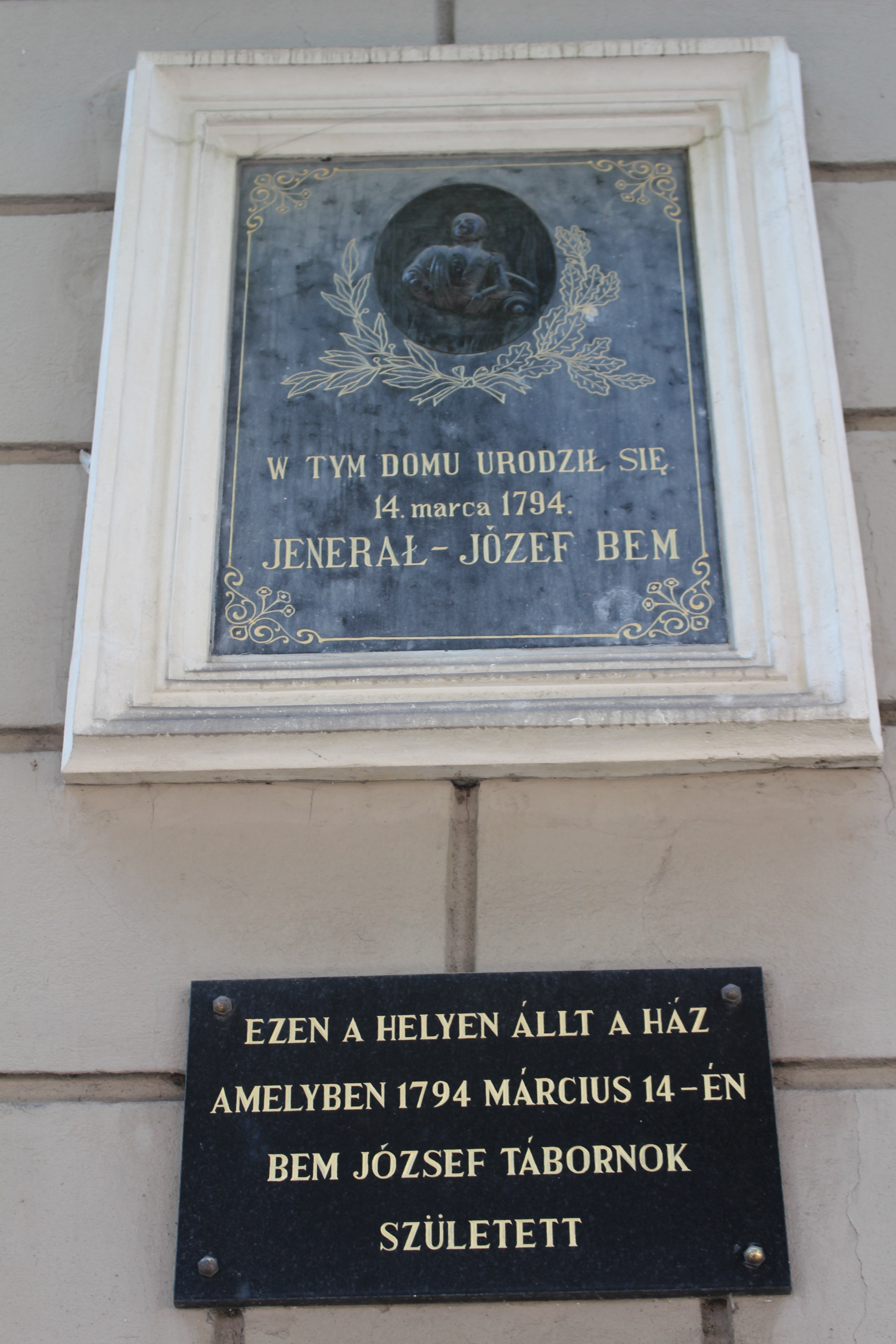 Obecnie na fasadzie domu wiszą dwie tablice – oryginalna z wizerunkiem Bema i napisem: “W tym roku urodził się 14 marca 1794 roku jenerał – Józef Bem” oraz późniejsza z napisem w języku węgierskim.
