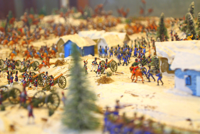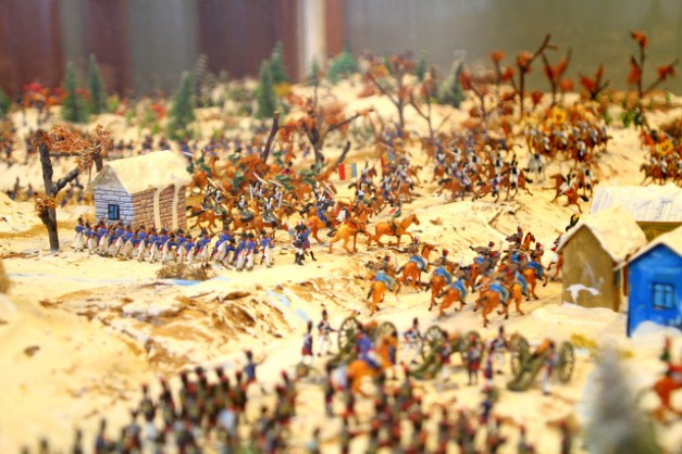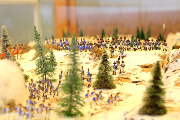 Diorama jest niewielka (jakieś 2,5 x 2,5 metra), figurki żołnierzy są w skali 1:72 Proporcje odległości nie są zachowane, więc “pole bitewne” wygląda nieco karykaturalnie, ale pomaga zorientować się, kto, gdzie znajdował się podczas bitwy. Figurek jest mało i nie da się tej dioramy choćby z dioramami w Lipsku. Ale będąc w Twarożnej warto tu chwilę wpaść
