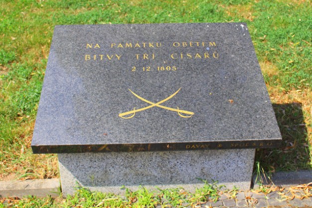 Kilkanaście metrów obok stoi niewielkie pomniczek – czarna płyta kamienna na niewielkim cokole. Na płycie widnieje napis w języku czeskim: “Na pamiątkę zabitym w bitwie trzech cesarzy 2.12.1805” oraz dwie skrzyżowane szable. Pomnik ustawiono tutaj w 1993 roku.