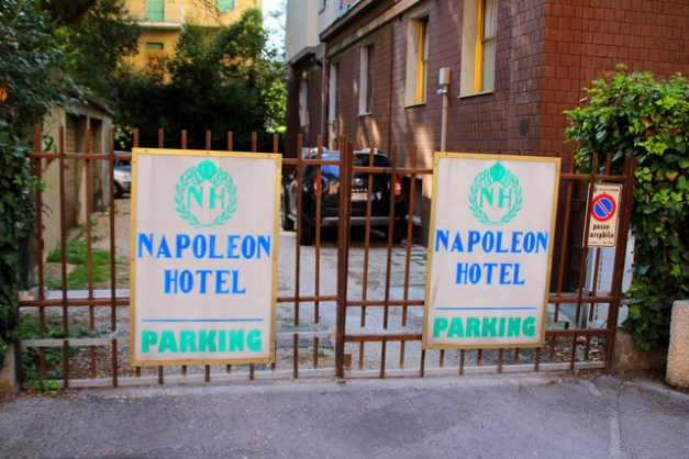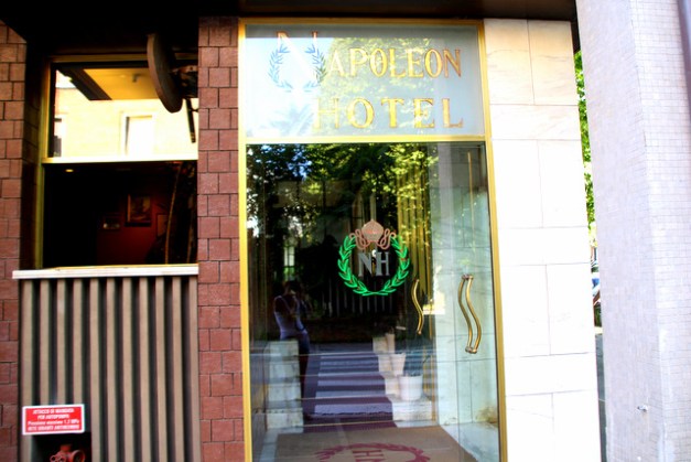 Miejsce jego noclegu znajduje się kilka minut spaceru od hotelu (czytaj TUTAJ). Natomiast hotel Napoleon stoi na placu Battisty, na rogu ulicy Michała Anioła Tonti. Hotel ma do dyspozycji gości 60 pokoi.