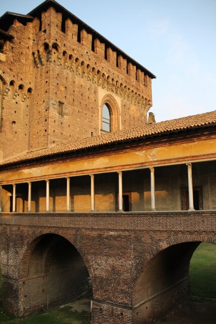 Forteca zbudowana z cegieł na palnie kwadratu został zbudowany przez pierwszego księcia , Gian Galeazzo Visconti Mediolanu w 1358 roku. Przez lata była siedzibą rody Sforzów. Pod koniec XIX wieku, kiedy Lombardia znajdowała się pod panowaniem Austrii, na zamku urządzono arsenał i koszary. Tak było do roku 1796.