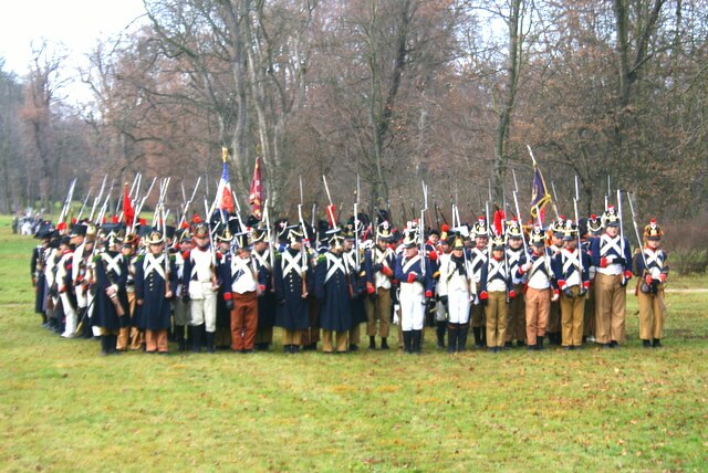 Po bitwie do miasteczka wrócili Francuzi i tym razem na zamku kwaterę – od 3 grudnia – miał sam Napoleon oraz jego sztab. Z balkonu od strony parku wygłosił mowę do swych żołnierzy o zwycięskiej bitwie.