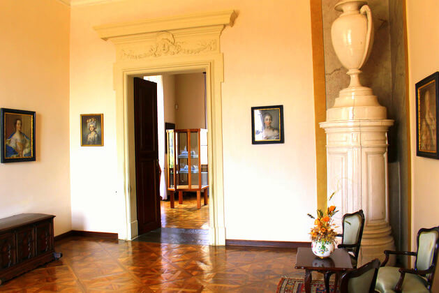 Co dziwne – jak na Morawy Południowe, gdzie każde miejsce związane z Napoleonem i bitwą pod Austerlitz jest drobiazgowo oznaczane – w sali, w której nocował cesarz nie ma żadnej informacji o tym, nawet skromnego portretu Napoleona.