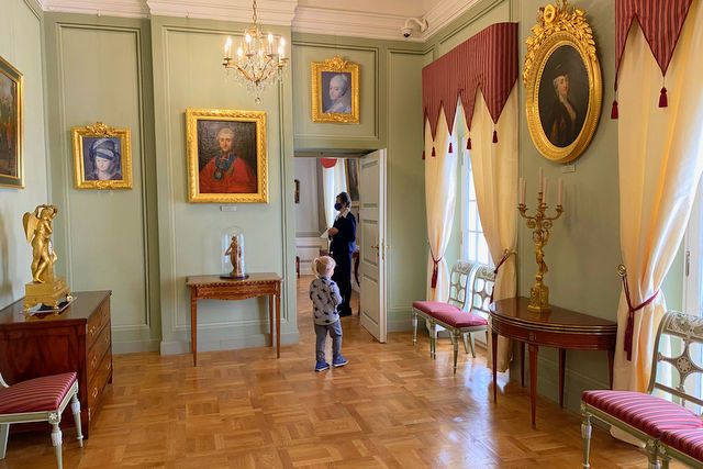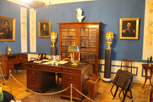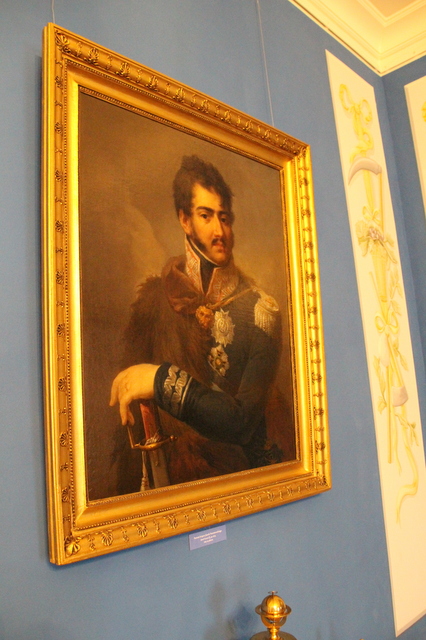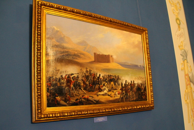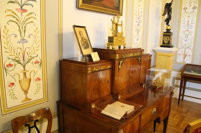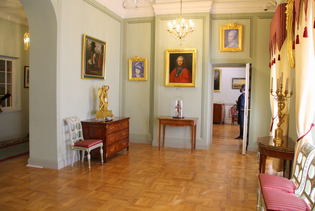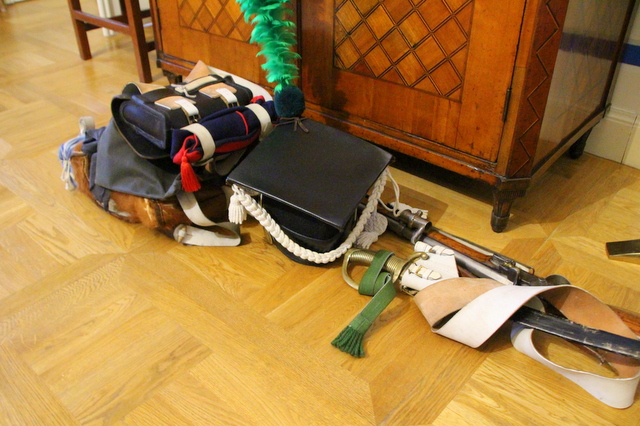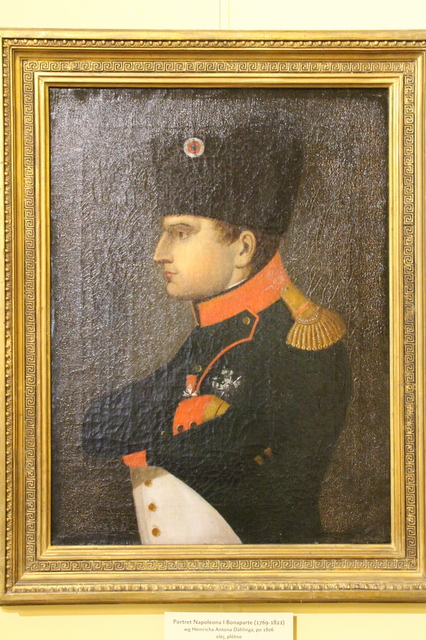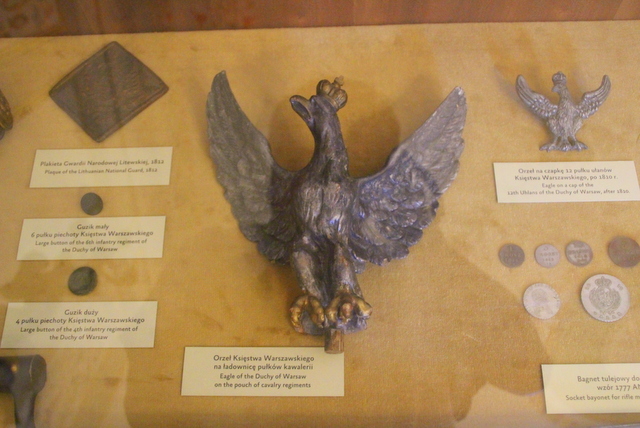 Borodino. W kilku kolejnych pokojach oglądamy obrazy, meble z epoki, sprzęt, fragmenty uzbrojenia, eksponaty pochodzące wykopalisk (m.in. guziki, drewniany orzeł, szabla).