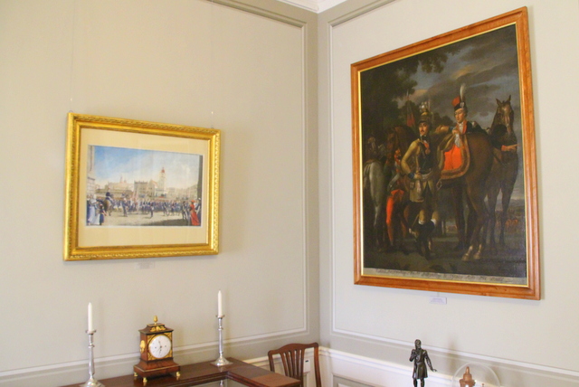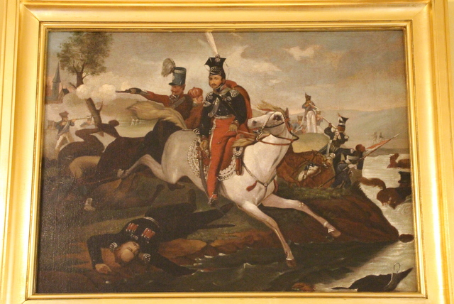 Z obrazów najważniejsze wydają się Portret księcia Józefa Poniatowskiego, autorstwa Józefa Grassiego, Bitwa pod Fuengirolą, autorstwa Januarego Suchodolskiego, konny Portret oficera 13. pułku huzarów Księstwa Warszawskiego, namalowany przez Feliksa Sypniewskiego.