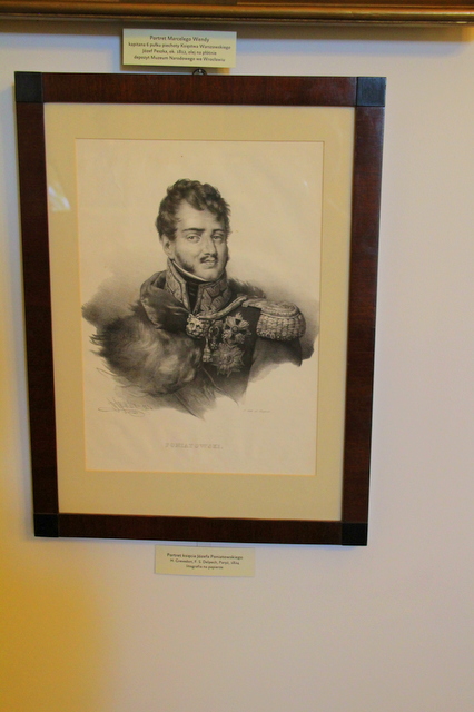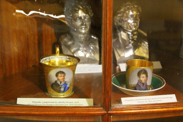 Są oczywiście obrazy przedstawiające moment śmierci księcia Poniatowskiego, są naczynia z jego podobizną, medale, order Virtuti Militari. Wśród rzeźb oglądamy marmurową Madame Recamier i popiersie Napoleona. Wśród eksponatów znajdują się również miniatury portretowe matki i siostry księcia Józefa, oryginał list metresy, Henrietty de Vauban W jednej z gablot leży beczułka na napoje, używana przez kantynierkę, służącą w jednym z francuskich pułków.