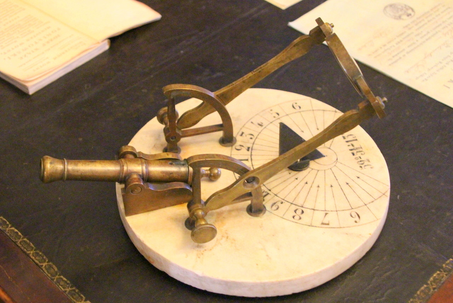 Na biurku księcia stoi zegar słoneczny – okrągły blat, lupa powiększająca i armata. Promień słoneczny przechodzący przez lupę zapalał lont armatni a ta wystrzałem oznajmiała godzinę.