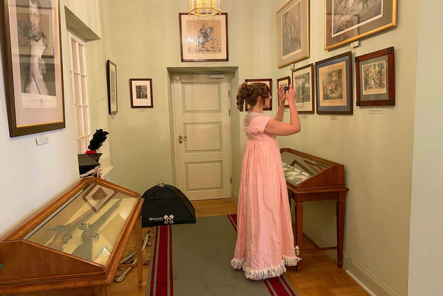 Naszemu rodzinnemu zwiedzani towarzyszyli rekonstruktorzy, udało nam się uchwycić m.in. damę i żołnierza grających na fortepianie. Na dole w gablocie widnieje kilka „pamiątek” związanych z wystawą. Niestety, zarówno magnesy z Pepim, jak i książki można kupić tylko w kiosku w Zamku Królewskim (kilka minut spacerkiem od wystawy).
