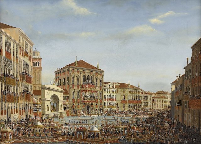 Trzecią rocznicę koronacji na cesarza Napoleon obchodził w Wenecji. Zresztą rocznicę tę obchodziło z nim całe miasto. Najważniejszym punktem obchodów były regaty na Canal Grande.