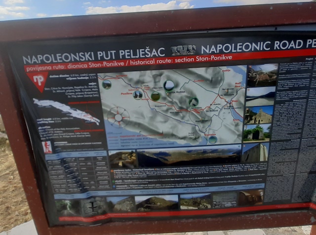 Droga Napoleona na półwyspie Pelješak biegnie od miasteczka Ston, na południowy wschód od Orebića i Viganj, na północny zachód od półwyspu. Ma długość 61 364 metrów i jest drugim śladem obecności francuskiej w Chorwacji, po opisywanym wcześnie ukochanym mieści marszałka Marmonta – Splicie.