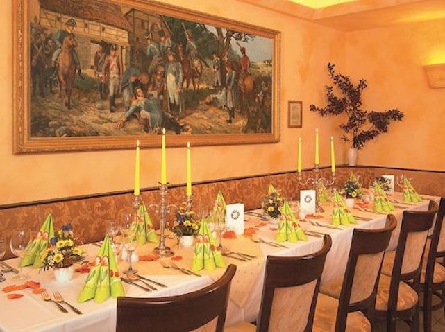 W foyer wisi obraz – portret autorstwa Güntera Haina, malarza z Goerlitz. Inny obraz wiszący w restauracji przedstawia Duroca leżącego po trafieniu kulą.