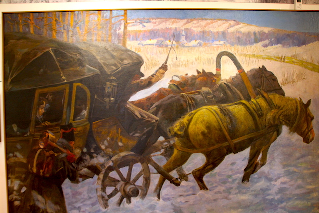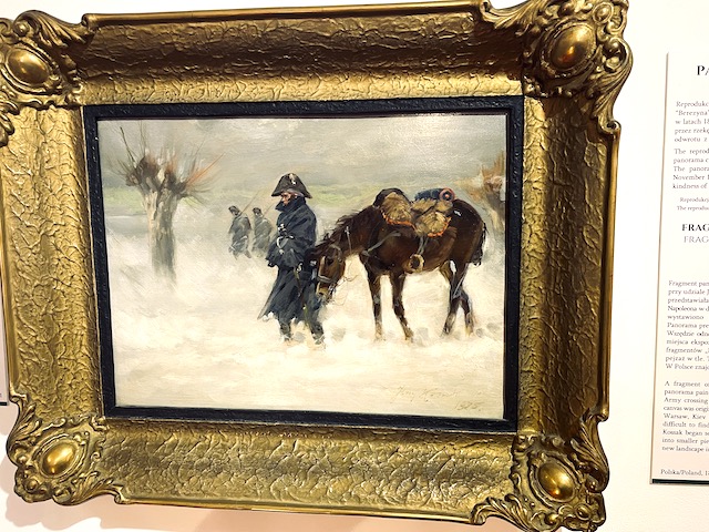 Tuż obok fragmentu panoramy, wisi mniejszy obraz autorstwa Jerzego Kossaka, pt. „Odwrót z Moskwy”. Jeden z wielu obrazów o tym tytule stworzonych przez tego artystę.